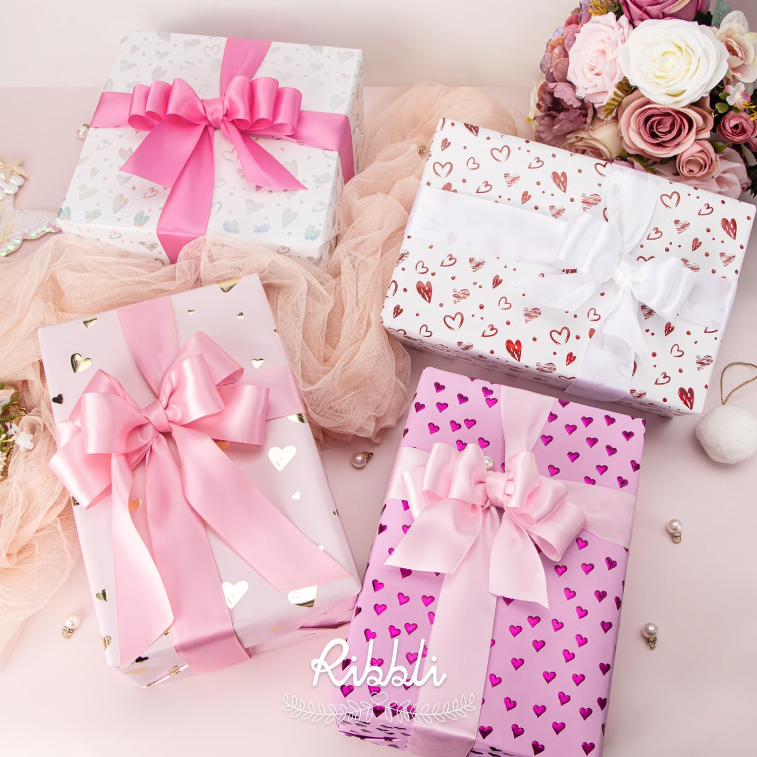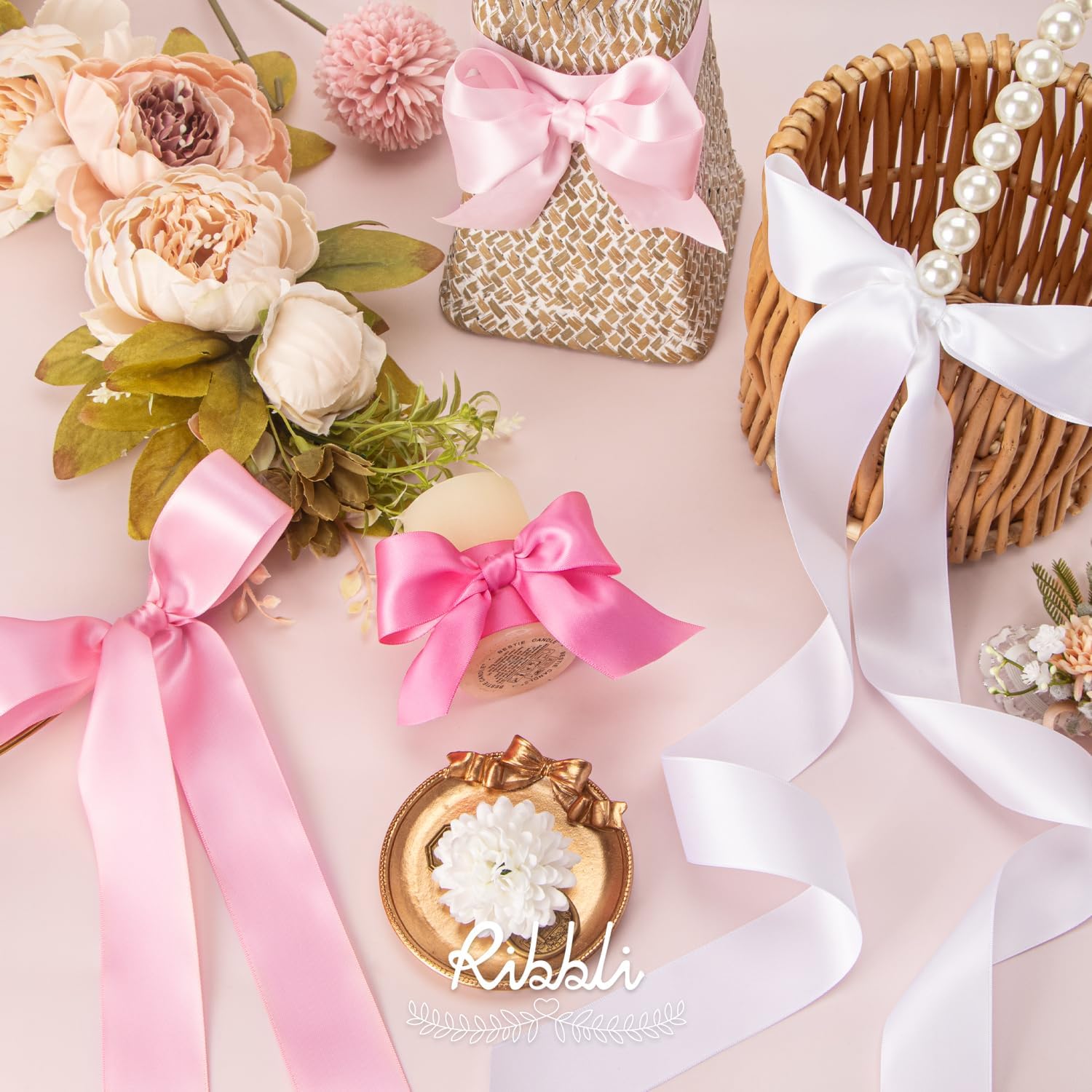 Ribbli Pink Satin Ribbon 1-1/2 Inch x 4 Rolls Total 40 Yards- White Pink Ribbon for Gift Wrapping Craft Wedding Decoration