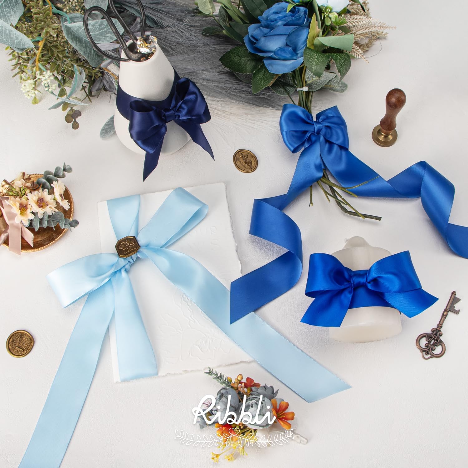 Ribbli Blue Satin Ribbon 1-1/2 Inch x 4 Rolls Total 40 Yards- Baby Blue/Royal Blue/Electric Blue/Navy Ribbon for Gift Wrapping Craft Wedding Decoration