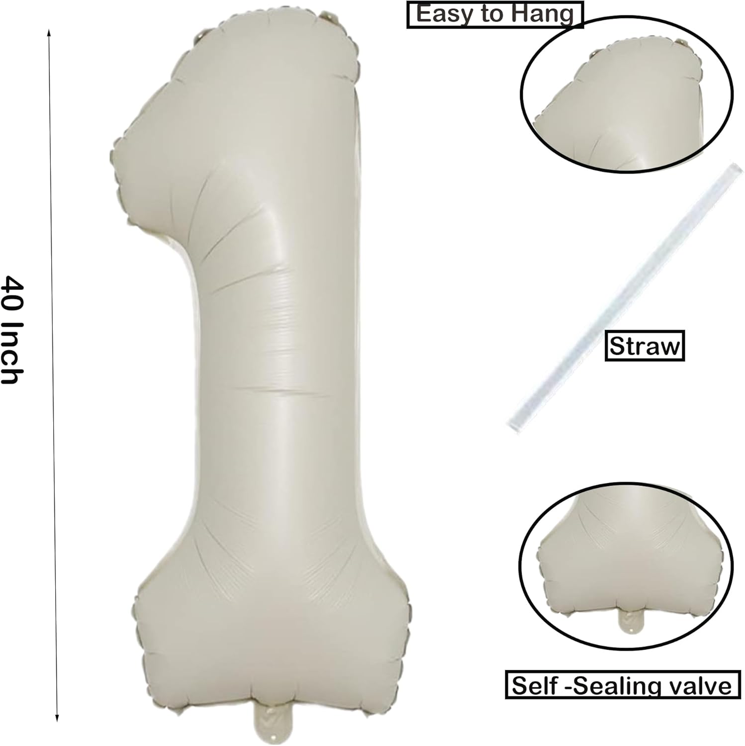 40 Inch Cream White Number1st Balloon Mylar Big Foil Helium Number 10th 11st 21 31 61 Balloon for Party Decorations,Digital Birthday Party Wedding, Boy Baby Shower Decorations (Cream No 1)