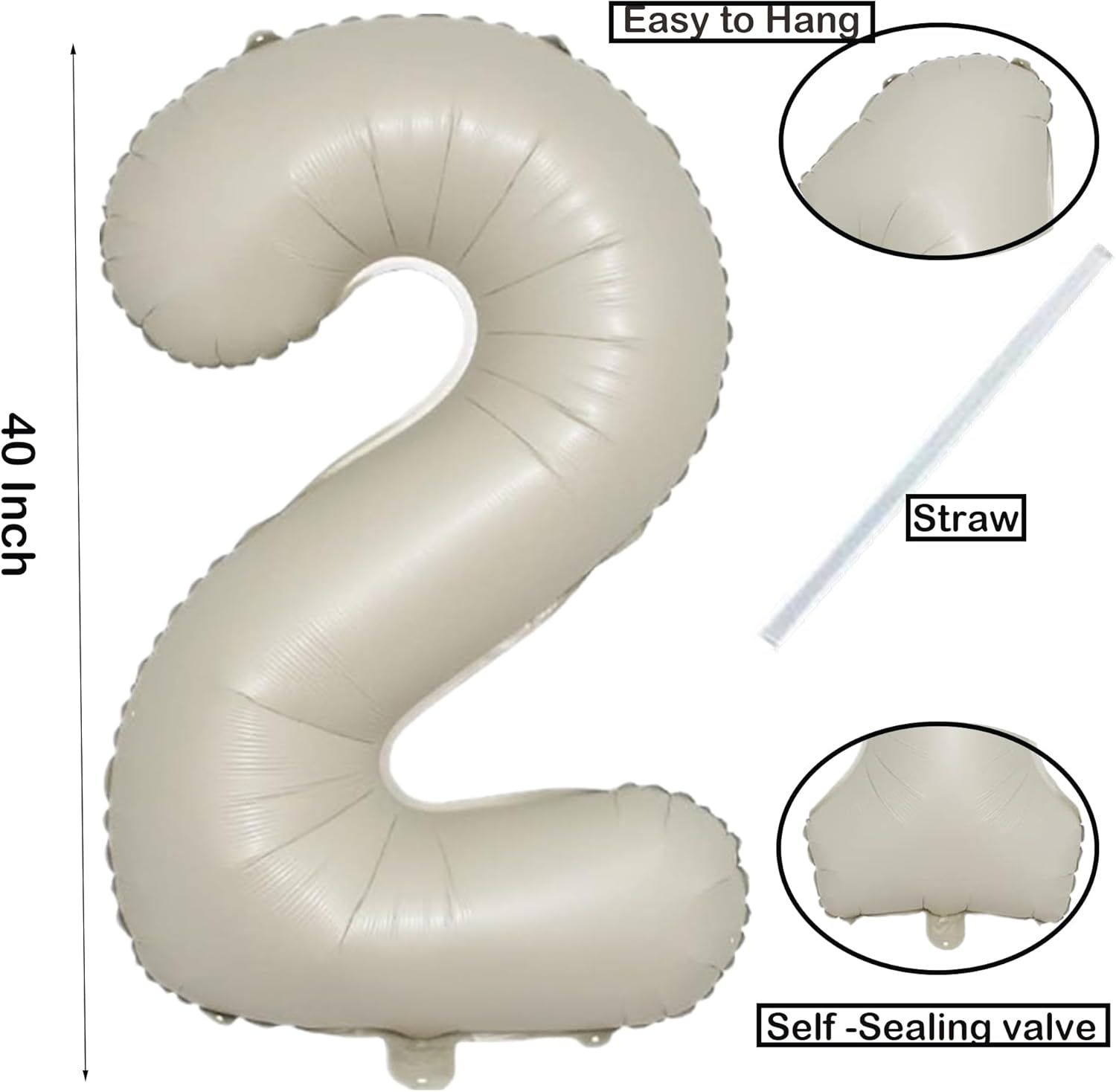 40 Inch Cream White Number Foil Balloons 2 for Kids Birthday Party LargeSelf Inflating Foil Numbe Balloons for 2nd Boys girls Digit 2 Balloon Decors 2 Year Old Anniversary Graduations Decors