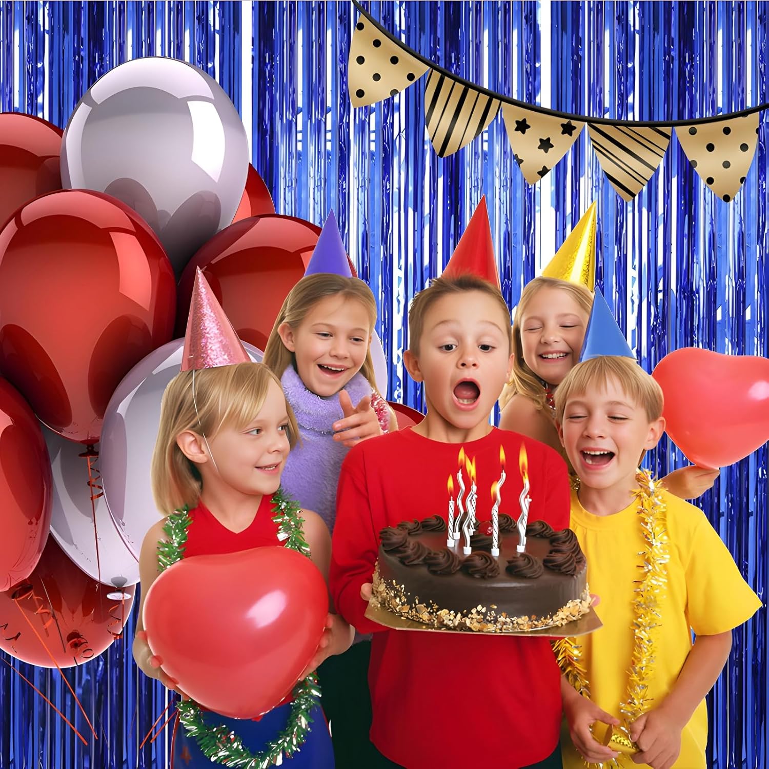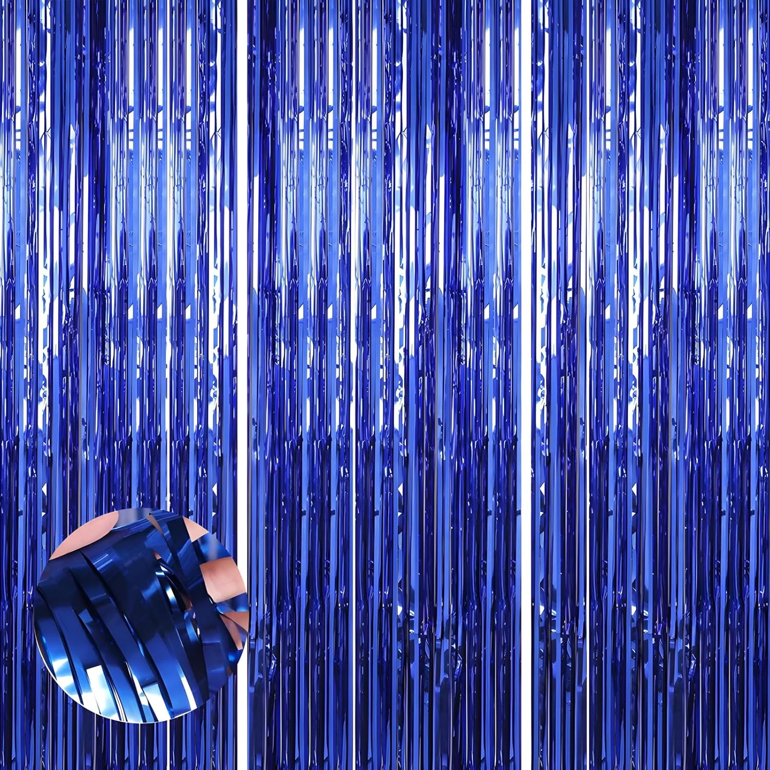Keyali 3 Pack 3.3 * 8.3 ft Foil Curtain Metallic Tinsel Fringe Curtains Photo Booth Props Backdrop for Birthday Wedding Engagement Baby Shower Christmas Holiday Celebration Partyl,Blue