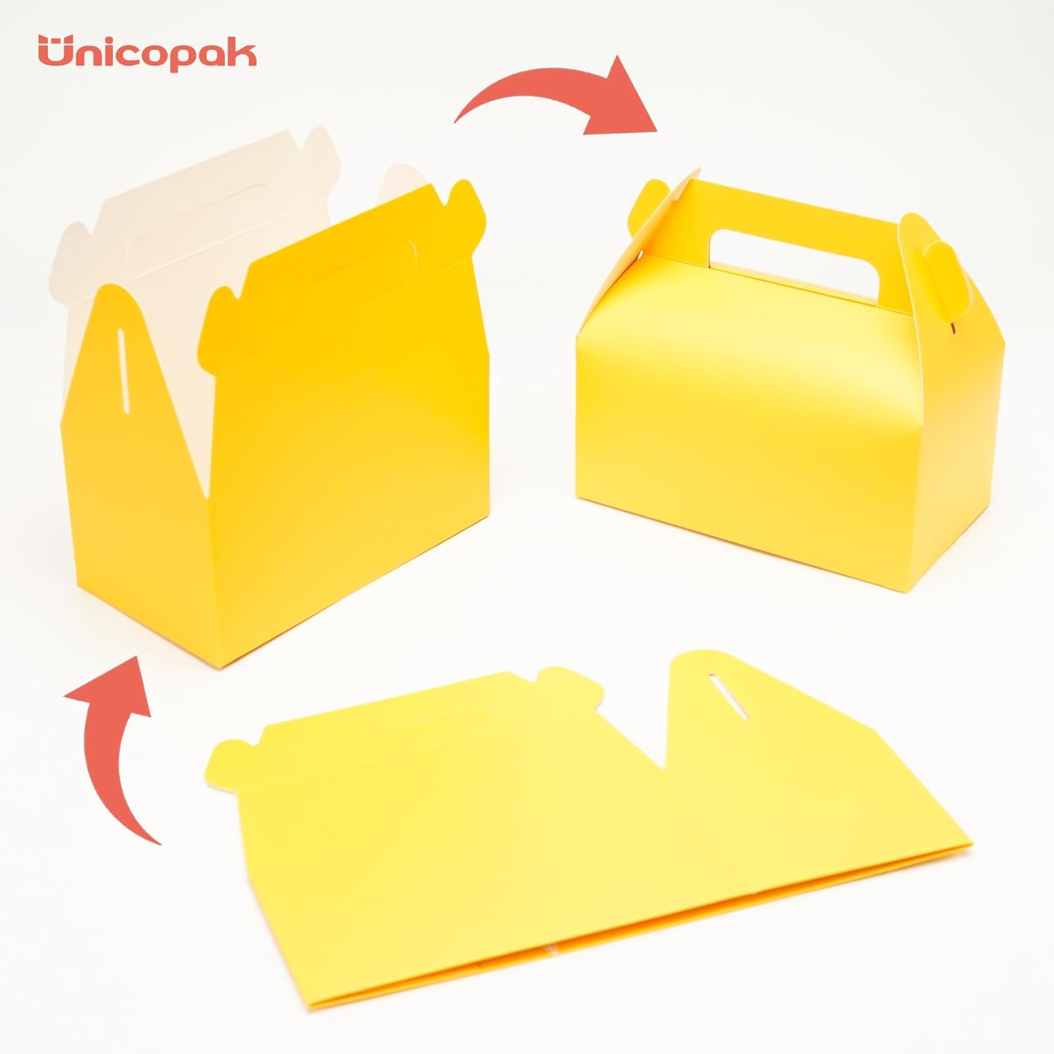 UnicoPak 30 Pack Yellow Gable Treat Boxes Party Favor Goodie Bag Boxes for Candy Treats Snacks Cookie Toys for Birthday Party Special Events, 6.5x3.5x3.5 Inches