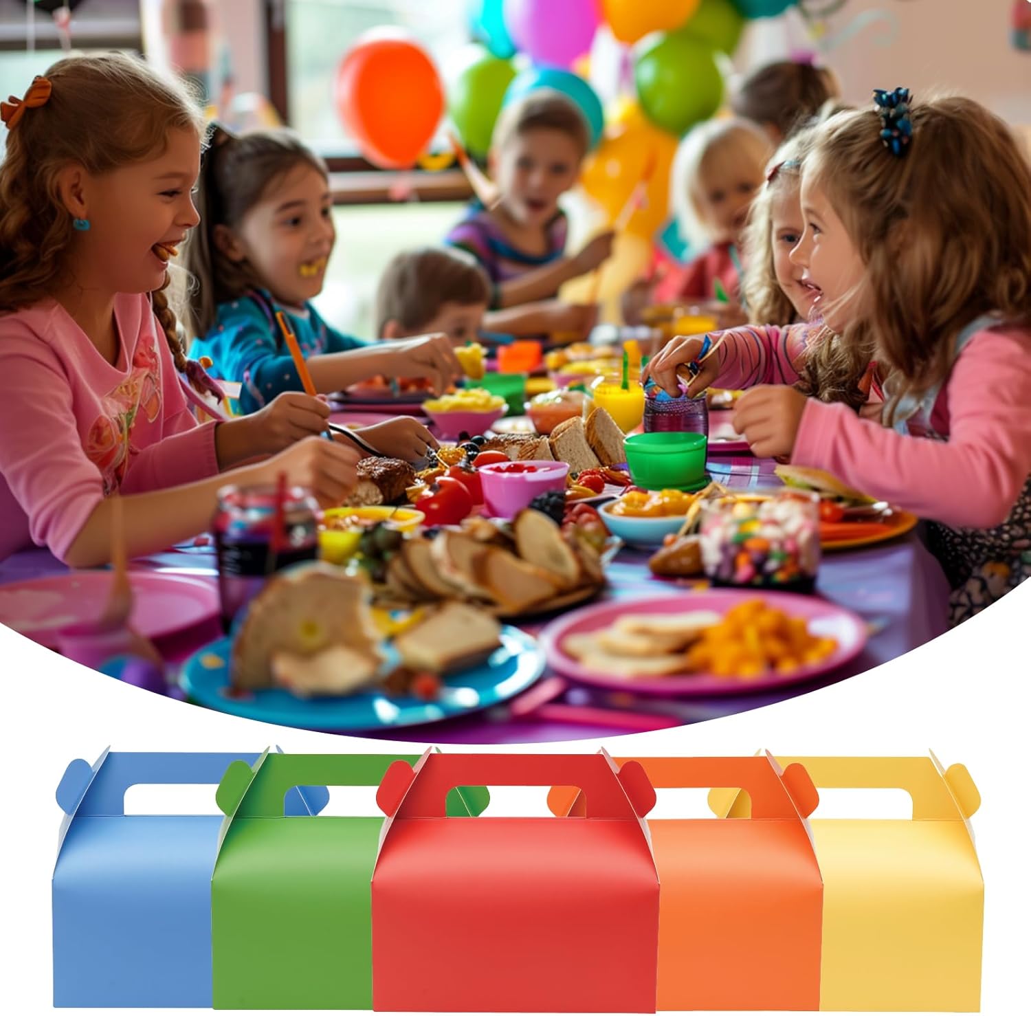 - Well constructed treat boxes party favors, very spacious party favor boxes for kids birthday. Pop-up design easy to assemble for the gift wrap, no difficulty for anyone, just a simple push in from opposite corners, fold in the handles and secure with the side flaps.