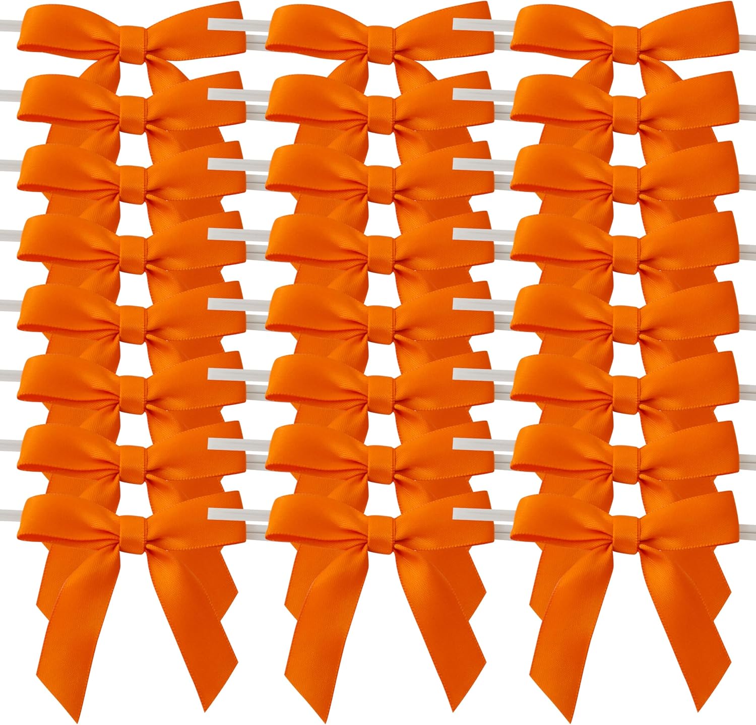 50pcs 2-1/2" Orange Twist Ties Satin Ribbon Bows in Pumpkin Color for Thanks Giving Halloween Wrapping Twist Tie Bows Hot Cutting(Orange)