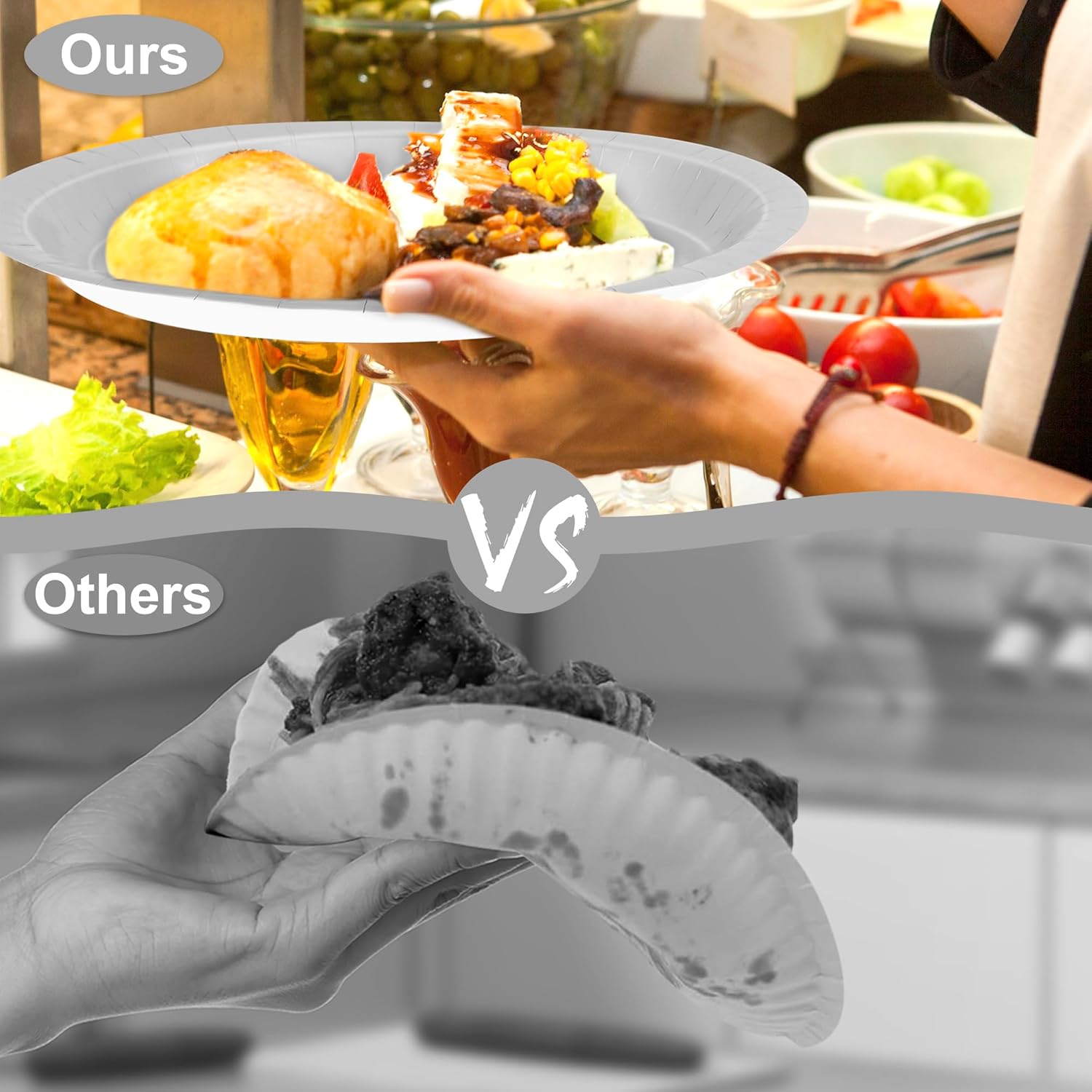 - High Quality - Our heavy-duty paper plates are made of 350 gsm paper, which is thick and lightweight, and they are food-grade and oil-resistant, so you can use them to hold almost any food you want.