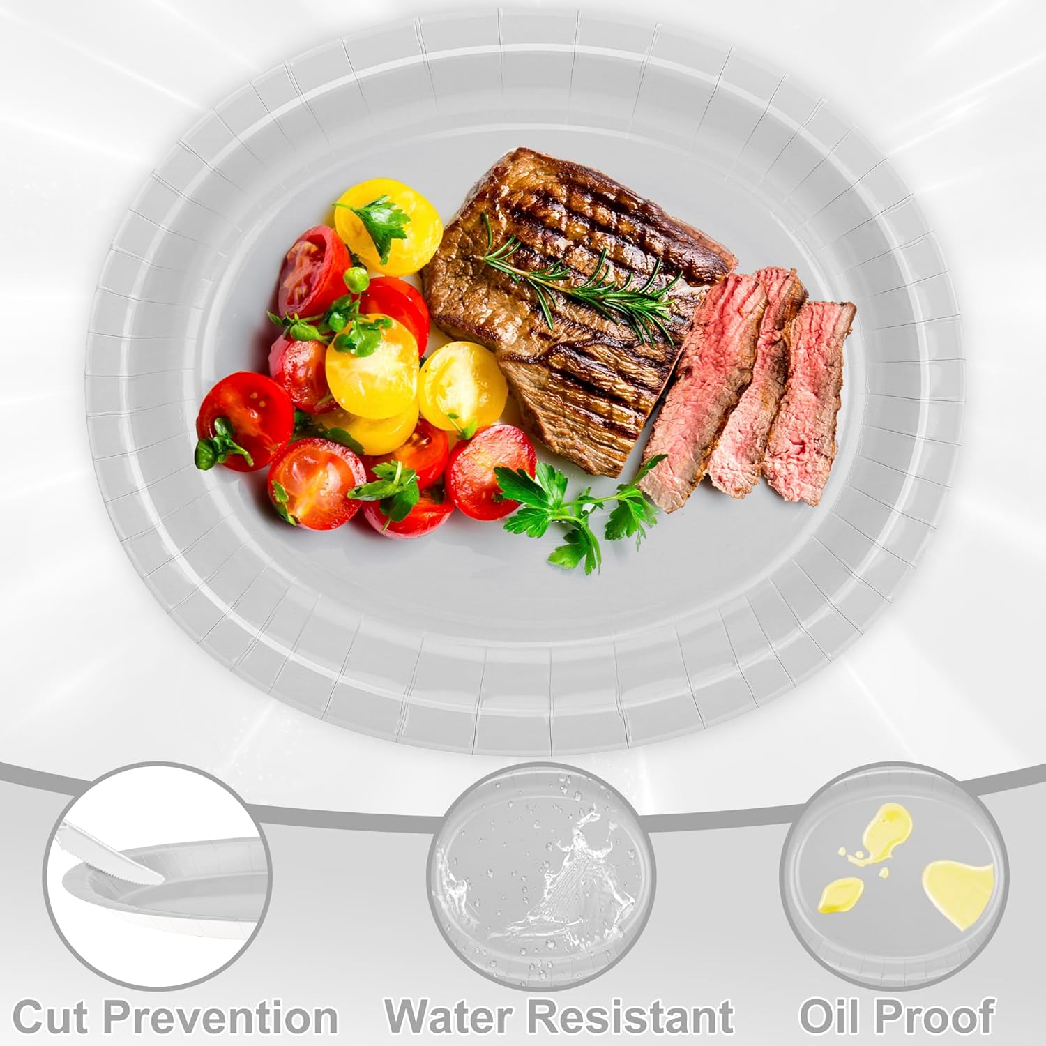 - Valuable Package - You will receive 50 pcs silver oval paper plates with dimensions of 12.2 x 10.2 inches. Sufficient quantity for birthdays, weddings, and daily dinner plates.