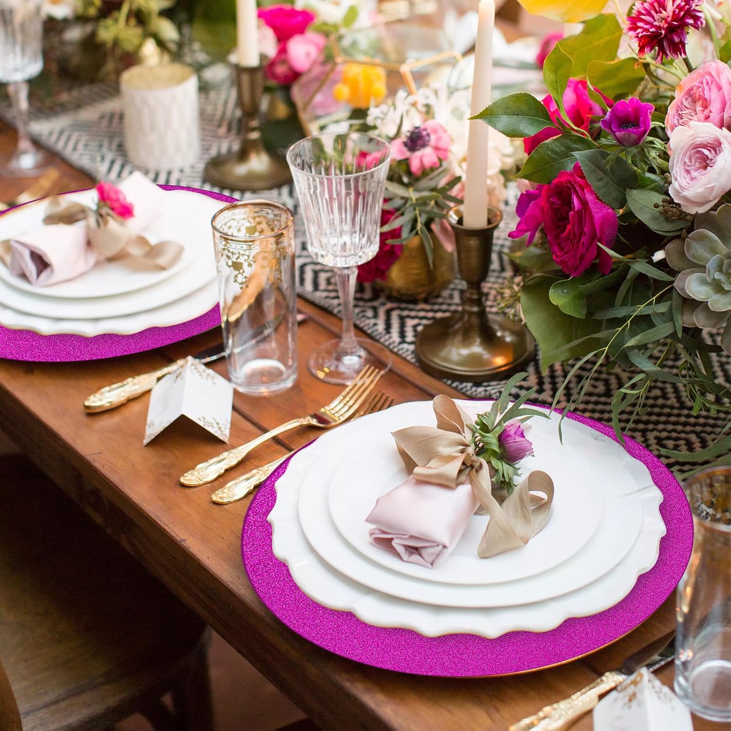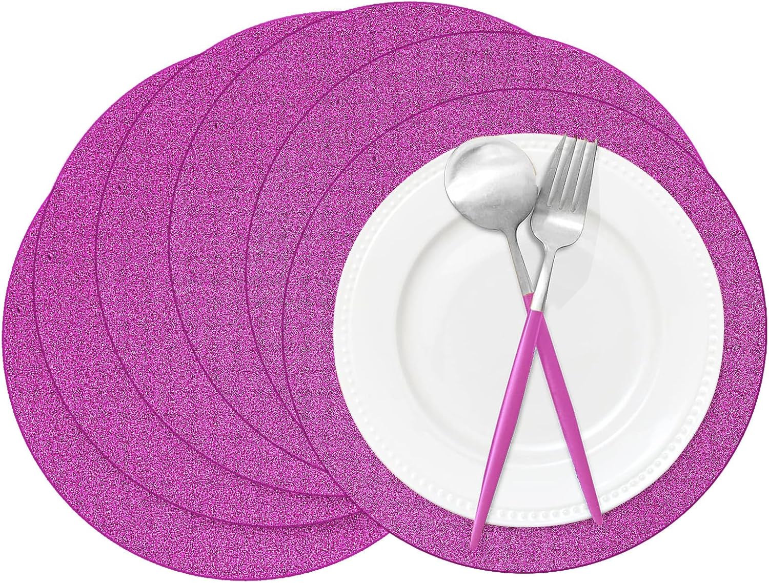 - What you get: 50 pieces of hot pink glitter paper placemats in the diameter of 14 inch, sufficient quantities and shiny effect that can meet your various dining table decoration needs