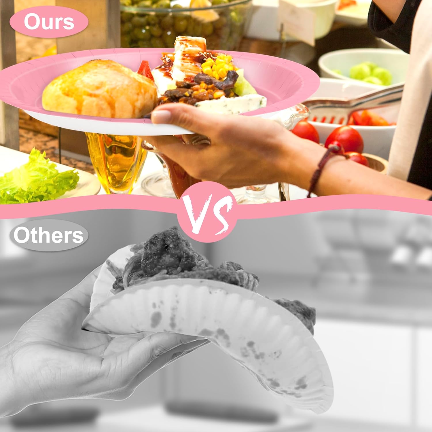 - Reliable Material - Made from 350 gsm food-grade paper, our heavy-duty paper plates are cut-resistant, water-resistant and oil-resistant, serving all types of meals and snacks during your celebratory events.