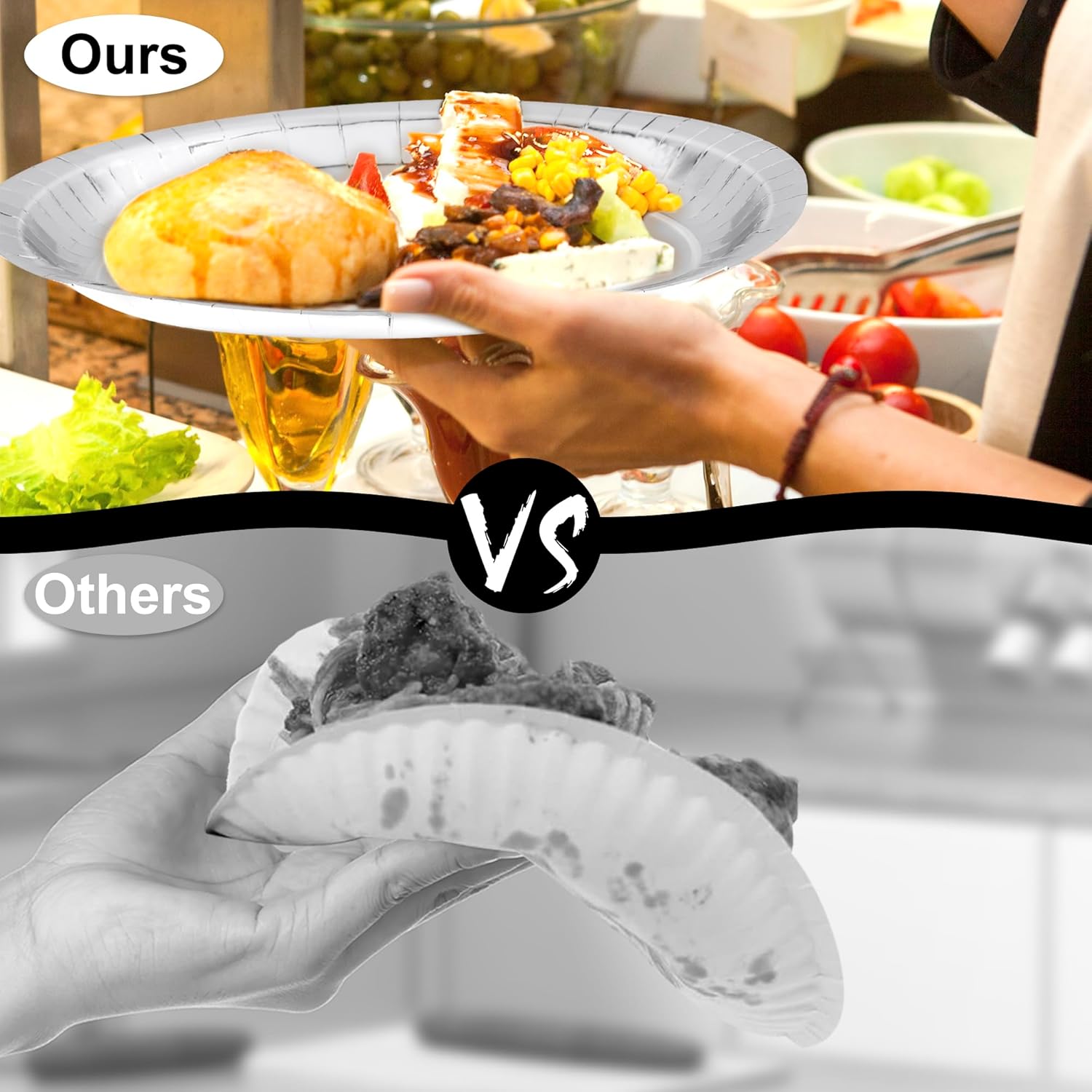 - Unique design - Designed for convenience and fashion, the large silver paper plates are your wonderful choice for various special occasions. Enhance your dining experience at graduation ceremonies, birthdays, weddings, and other occasions.