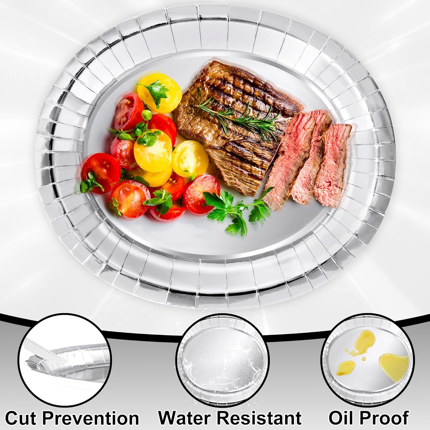 - Adequate Quantity - You will receive 50 silver metallic foil paper plates coated with silver foil, measuring 12.2 x 10.2 inches, ensuring that you have enough space for customers to use.