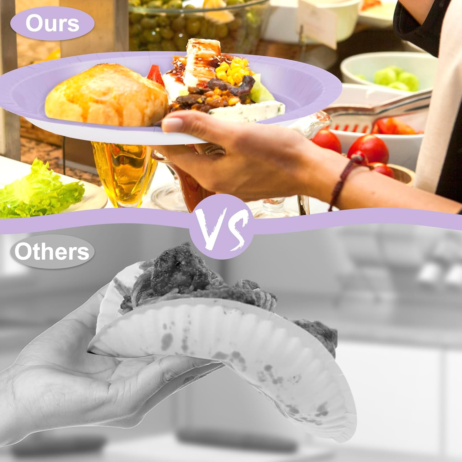 - Unique design - Disposable paper plates feature a light purple design, highlighting the fusion of comfort and fashion. Whether it's a simple family gathering or a joyful party, they can add great charm to your dining experience.