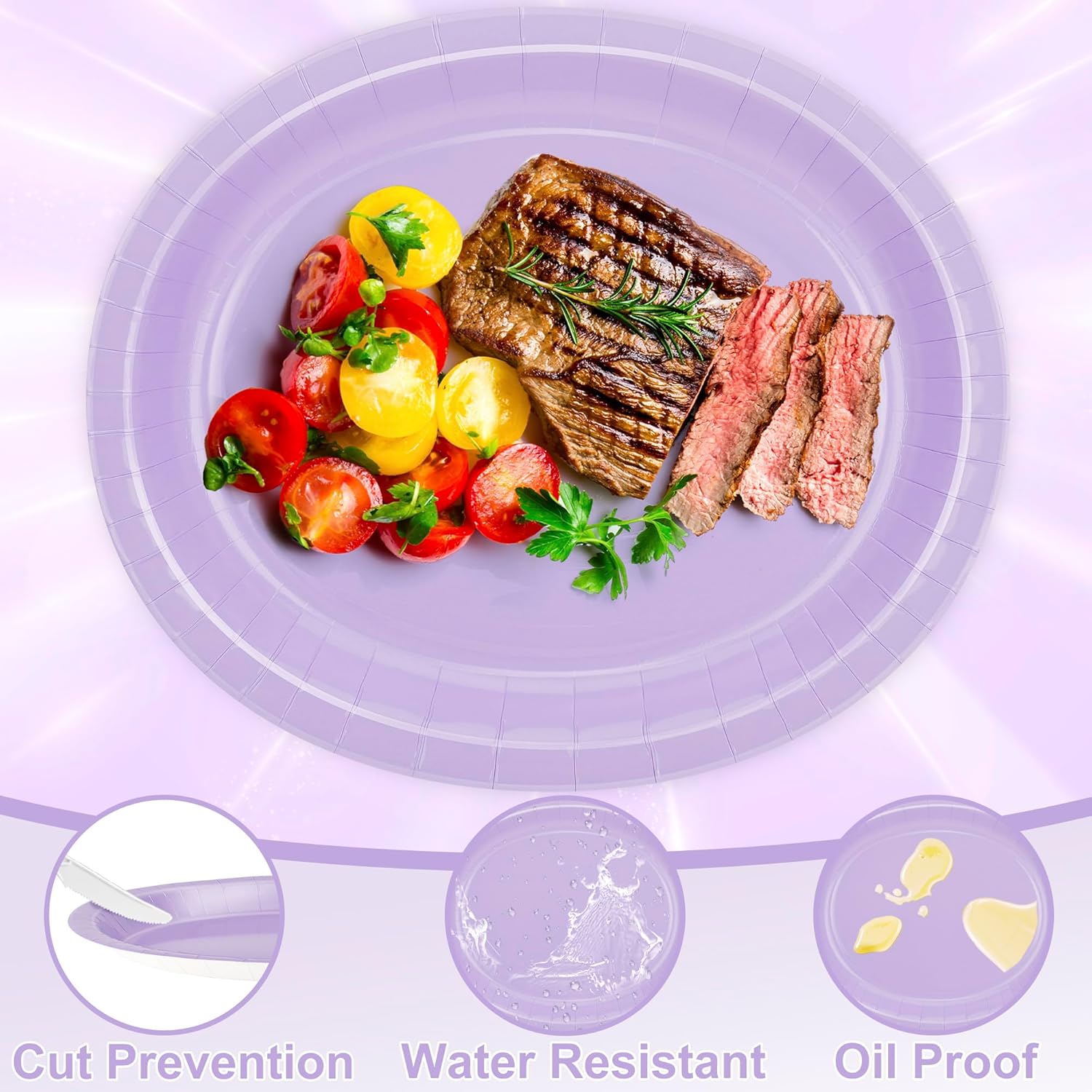 QZYL 50 Count Oval Paper Plates, 12.2'' X 10.2'' Large Lavender Disposable Plates for Daily Dinner, Wedding, Birthday, Party, Picnic, Baby Shower, Barbecue