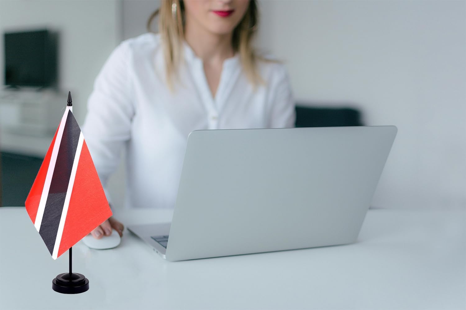 WXTWK 2 Pack Trinidad Flag Trinidad Deluxe Desk Flag Set - Mini Small Trinidad and Tobago Table Office Flags with Black 12" Solid Pole Stand Base Classroom Meeting Desktop Decorations