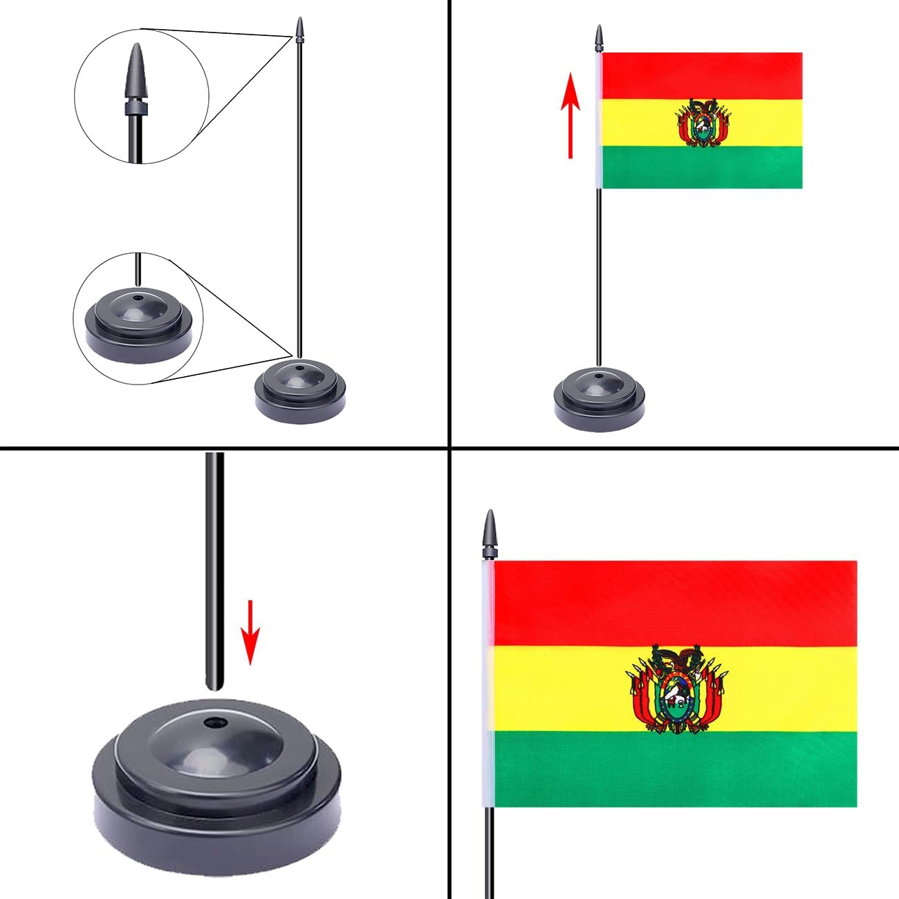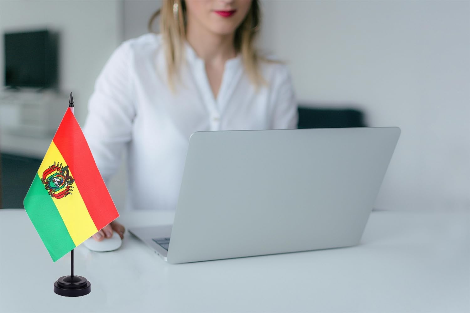 WXTWK 2 Pack Bolivia Flag Bolivia Deluxe Desk Flag Set - Mini Small Bolivian Table Office Flags with Black 12" Solid Pole Stand Base Classroom Meeting Desktop Decorations