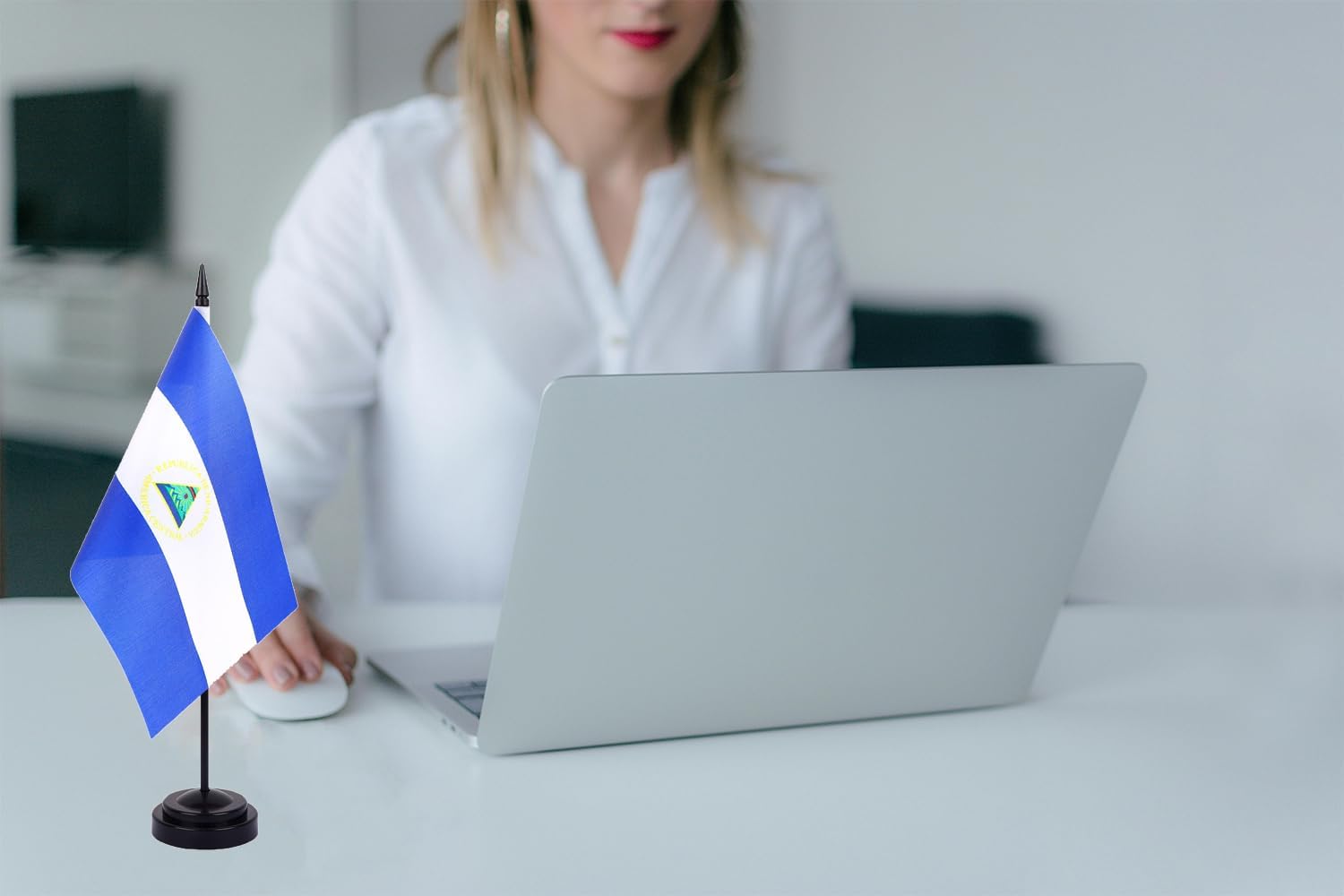 WXTWK 2 Pack Nicaragua Flag Nicaragua Deluxe Desk Flag Set - Mini Small Nicaraguans Table Office Flags with Black 12" Solid Pole Stand Base Classroom Meeting Desktop Decorations