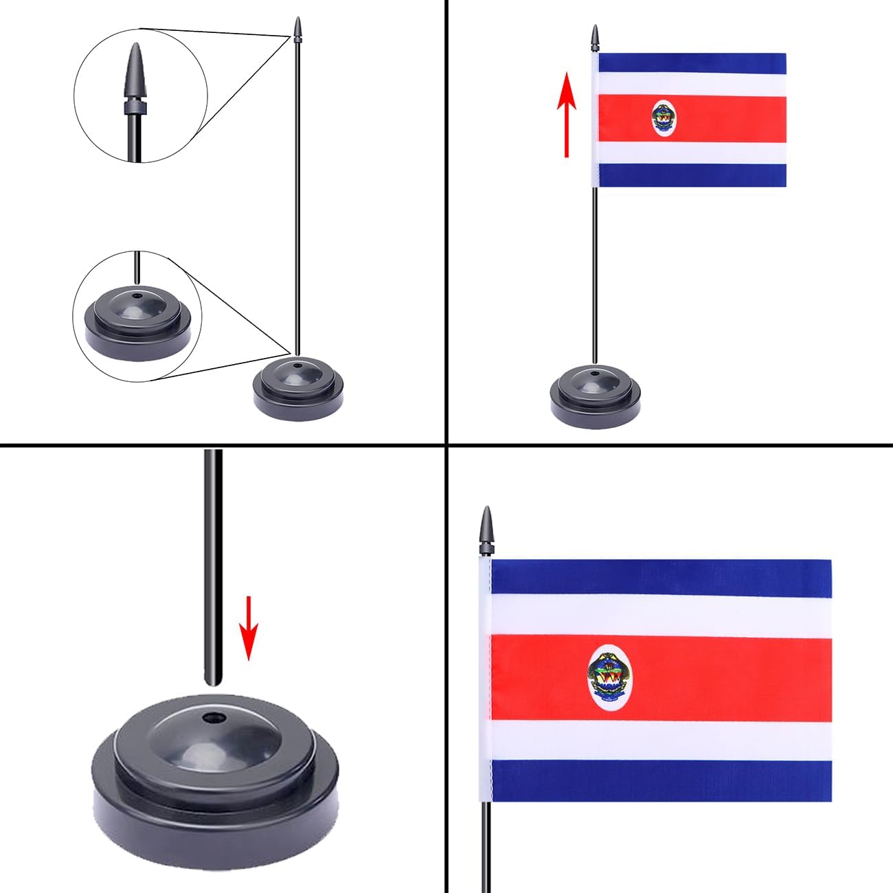 WXTWK 2 Pack Costa Rica Flag Costa Rica Deluxe Desk Flag Set - Mini Small Costa Rica Table Office Flags with Black 12" Solid Pole Stand Base Classroom Meeting Desktop Decorations