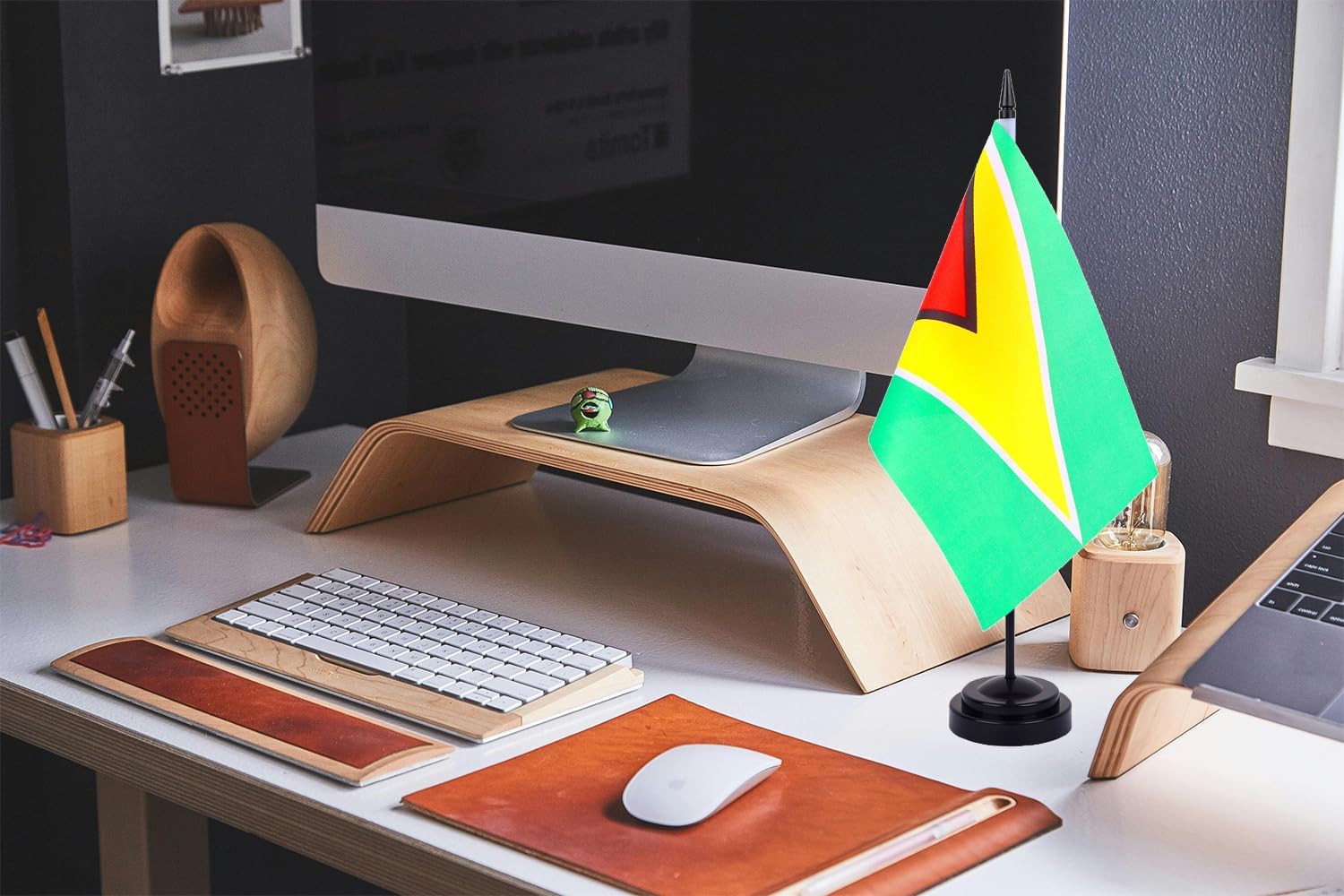 WXTWK 2 Pack Guyana Flag Guyana Deluxe Desk Flag Set - Mini Small Guyanese Table Office Flags with Black 12" Solid Pole Stand Base Classroom Meeting Desktop Decorations