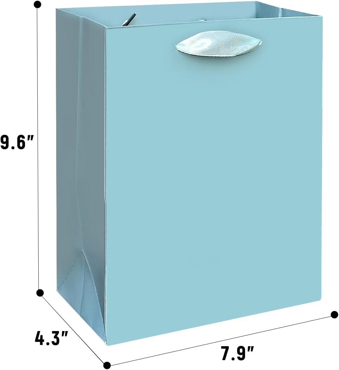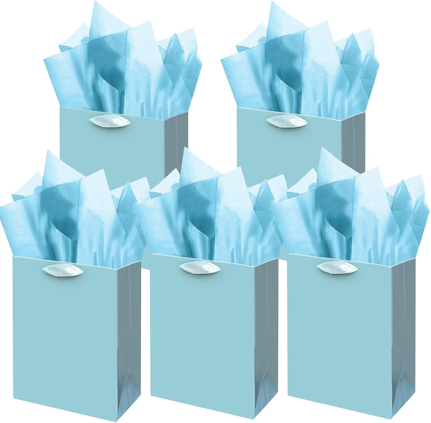 Gcardist Lake Blue Gift Bags with Tissue Paper for Wedding, Birthday, Party Supplies - Medium Size Cardboard Gift Bags (5pcs + 10pcs Tissue Paper)