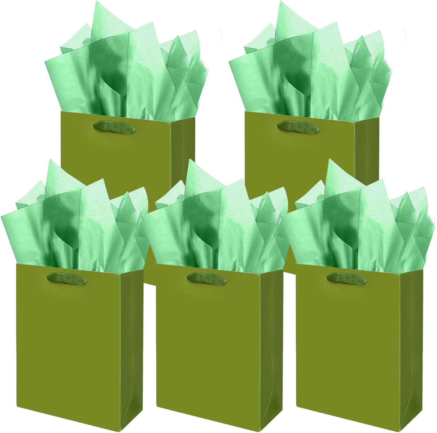 Gcardist Olive Green Gift Bags with Tissue Paper for Wedding, Birthday, Party Supplies-7.9"x4.3"x9.6" Medium Size Cardboard Gift Bags(5pcs Bags +10pcs Tissue Paper )