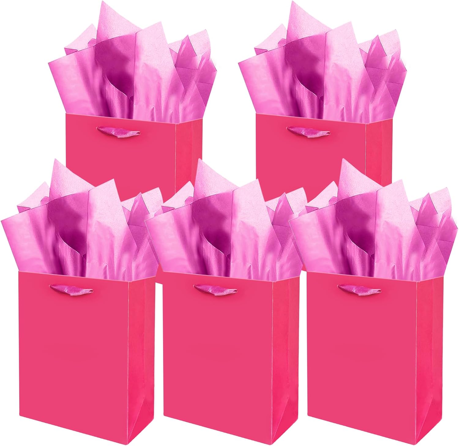 Gcardist Bright Pink Gift Bags with Tissue Paper for Wedding, Birthday, Party Supplies-7.9"x4.3"x9.6" Medium Size Cardboard Gift Bags(5pcs Bags +10pcs Tissue Paper )