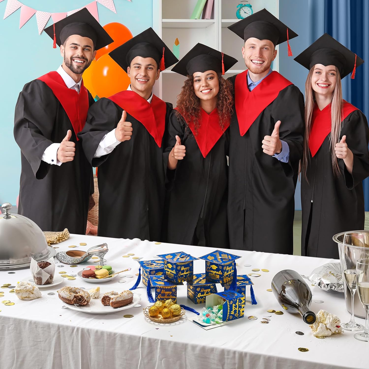 - High Quality Material: These graduation favor boxes are made of premium, food grade cardboard paper, safe, sturdy and durable enough for desserts, snacks and gifts. The navy and gold foil grad cap gift boxes are paired with navy tassels making them not just functional containers, but also charming graduation decorations for the special occasion.