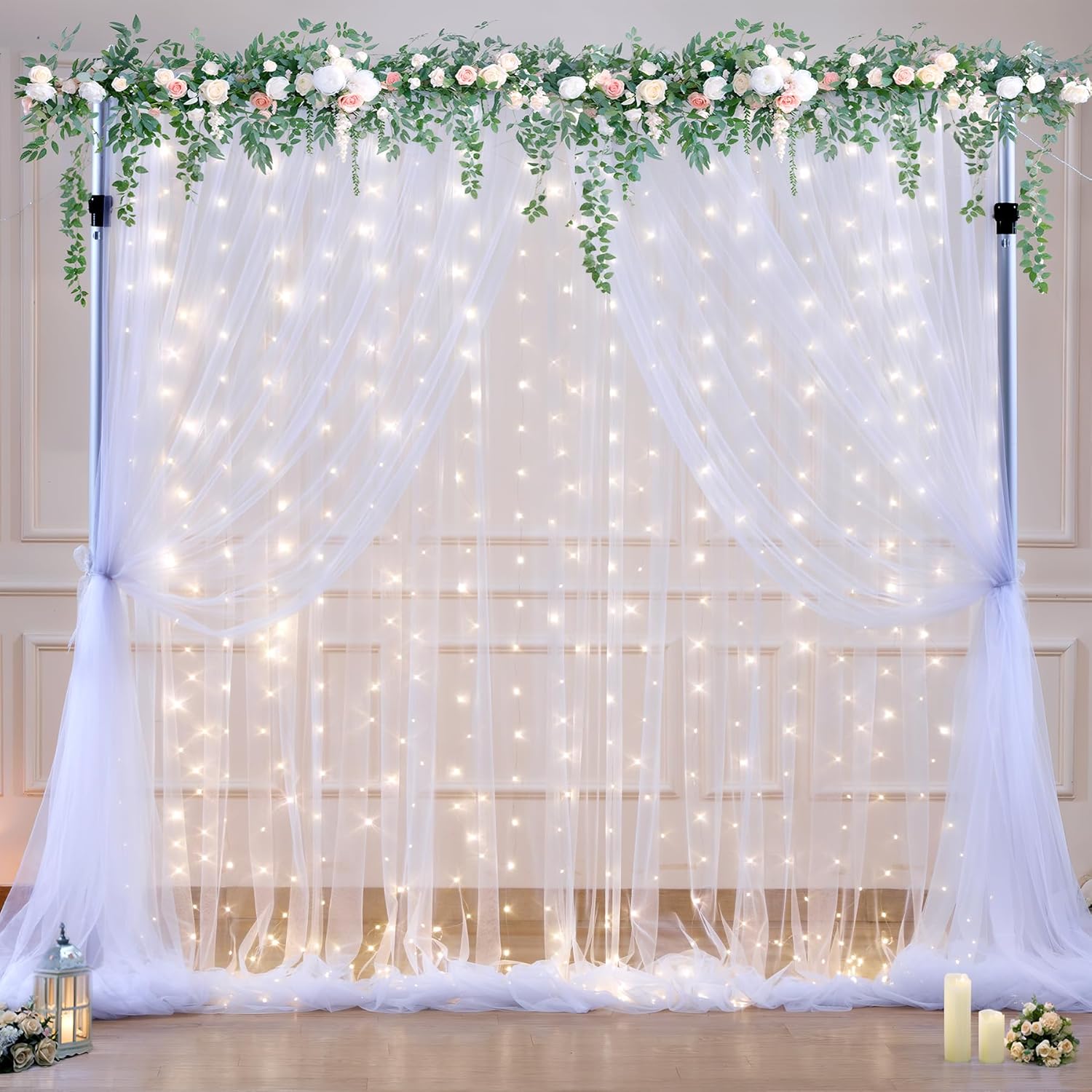 - Sheer Curtains with Lights Occasion: white backdrop curtain with lights perfect for any occasion! Perfect for marriage ceremony as a stage decoration, wedding reception, birthday party, baby shower, bridal shower, graduation, wedding photo booth props, proms, Christmas photoshoot and photography background wall decorations.Can be reused in multiple occasions.