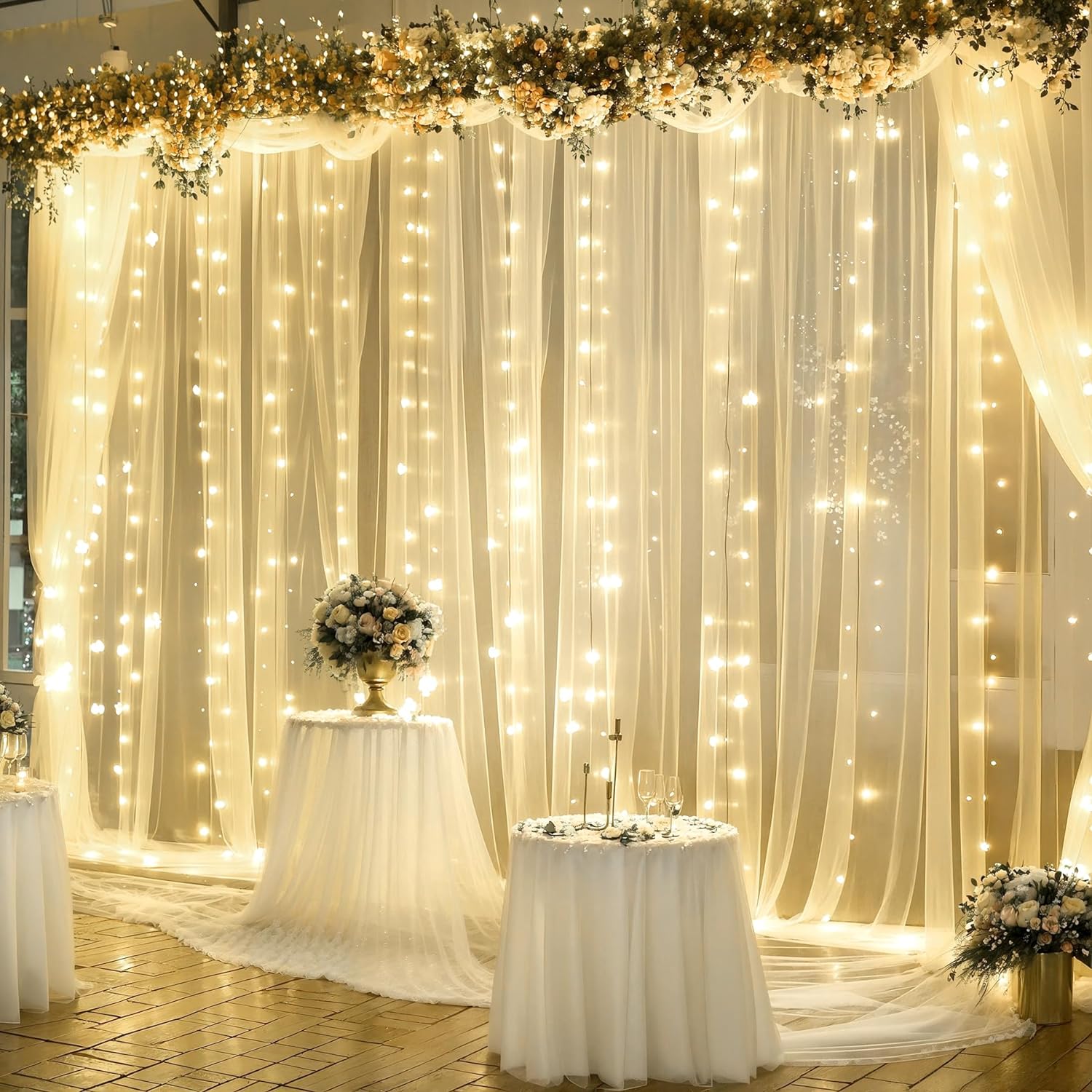 - Sheer Curtains with Lights Occasion: champagne backdrop curtain with lights perfect for any occasion! Perfect for marriage ceremony as a stage decoration, wedding reception, birthday party, baby shower, bridal shower, graduation, confirmation backdrop, first communion backdrop, wedding photo booth props, proms, Christmas photoshoot and photography background wall decorations.Can be reused in multiple occasions.