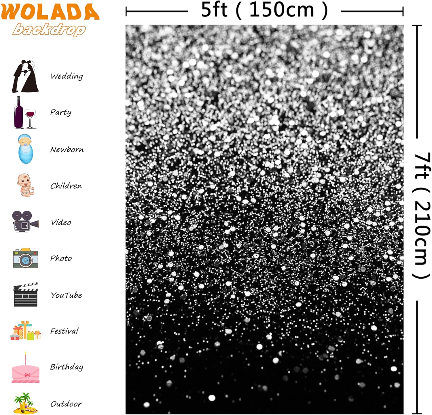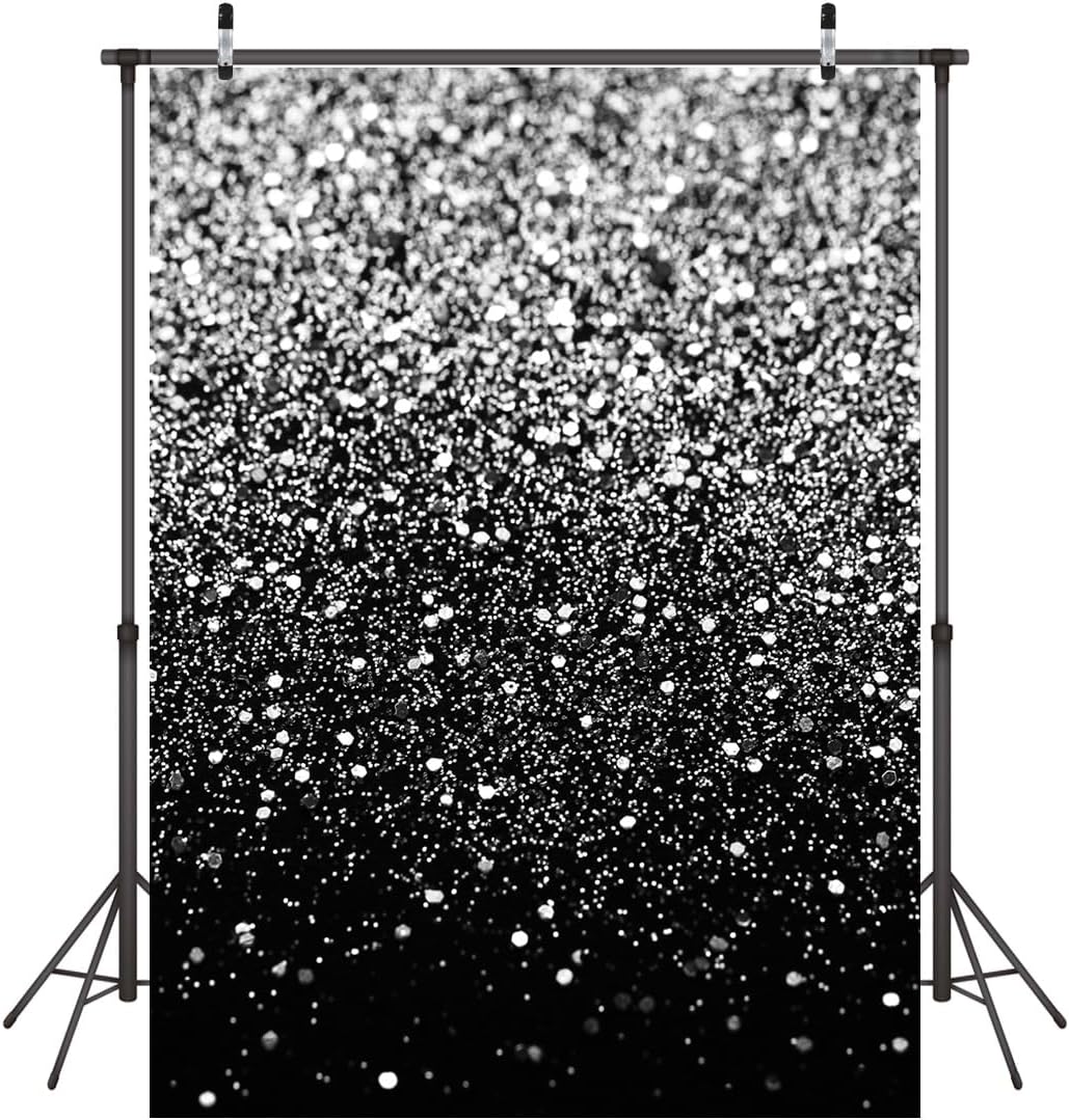 WOLADA Black and Silver Backdrop Silver Glitter Backdrop for Photography Wedding Birthday Baby Shower Party Photo Studio 5x7FT FW18