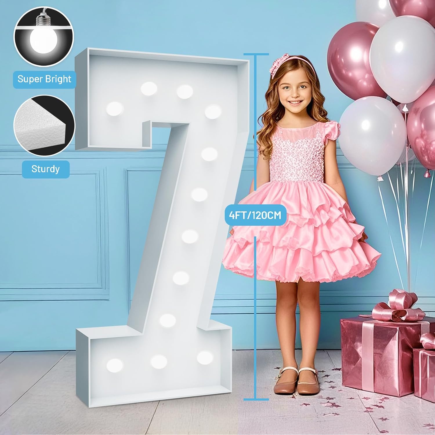 4FT Marquee Light Up Numbers - Cool White Light Up Numbers 7 with Fixed Water Bag, Party Decoration Large Marquee Light Up Numbers can Be Used for Wedding Decoration, Birthday Party Decoration