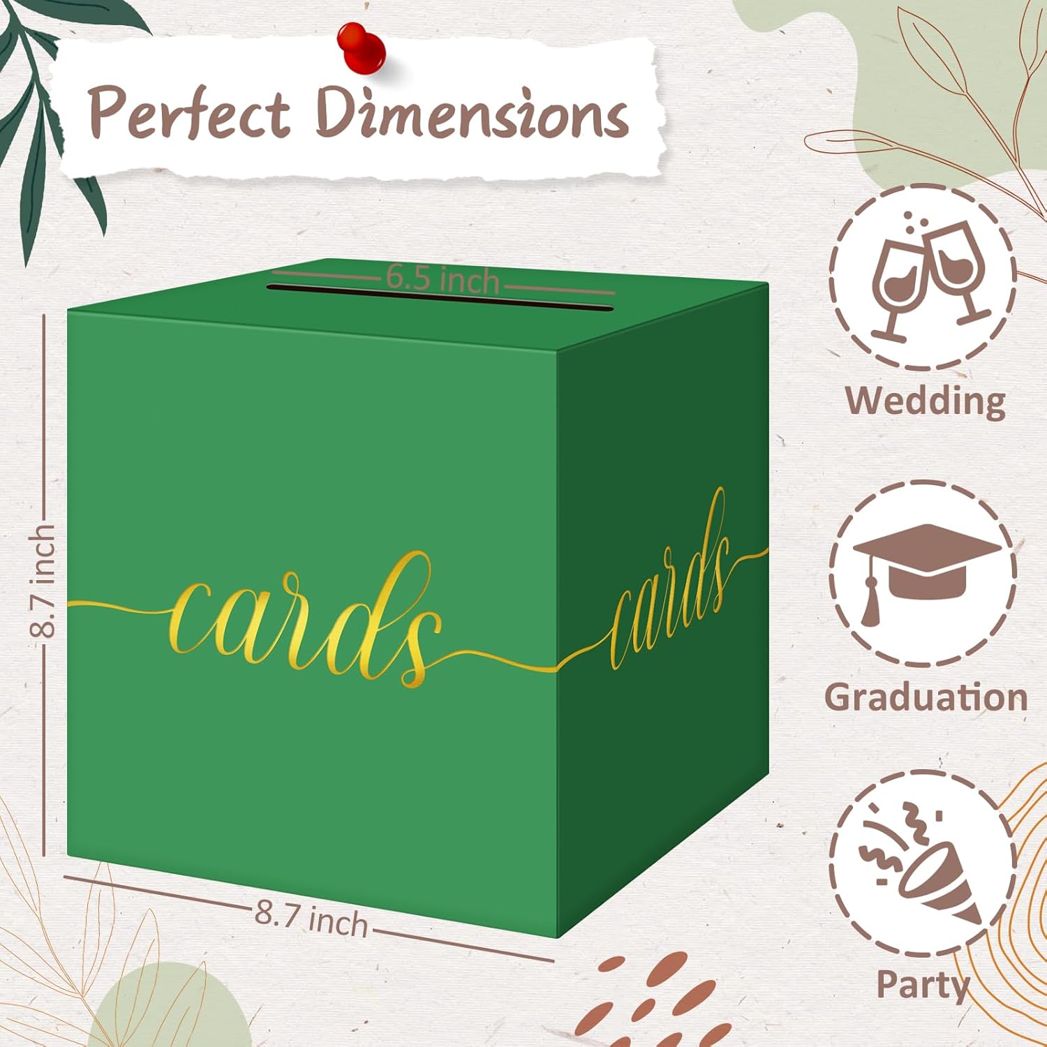 - Gold Foil Green Graduation Card Box Size: Pack of 1, card box measures 8.7 x 8.7 x 8.7 inches, large size to hold all sizes of envelope cards for weddings or parties.