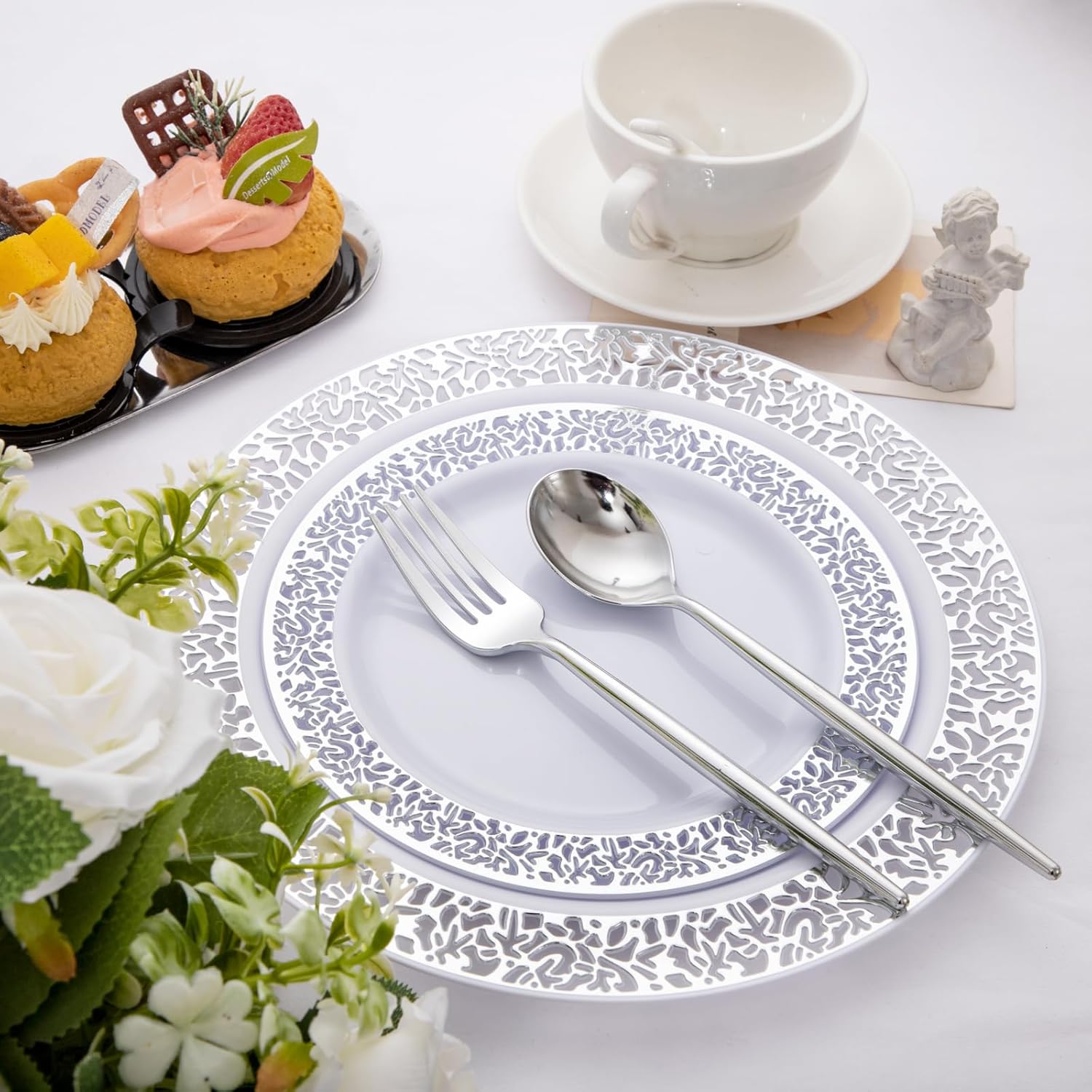 - FREE YOUR HANDS: Not only do these silver plastic silverware make your party more glamorous, but they also don't require you to clean up after the party is over. Simply throw them away and free your hands. If you need to use these disposable cutlery again, it is recommended to wash them by hand.