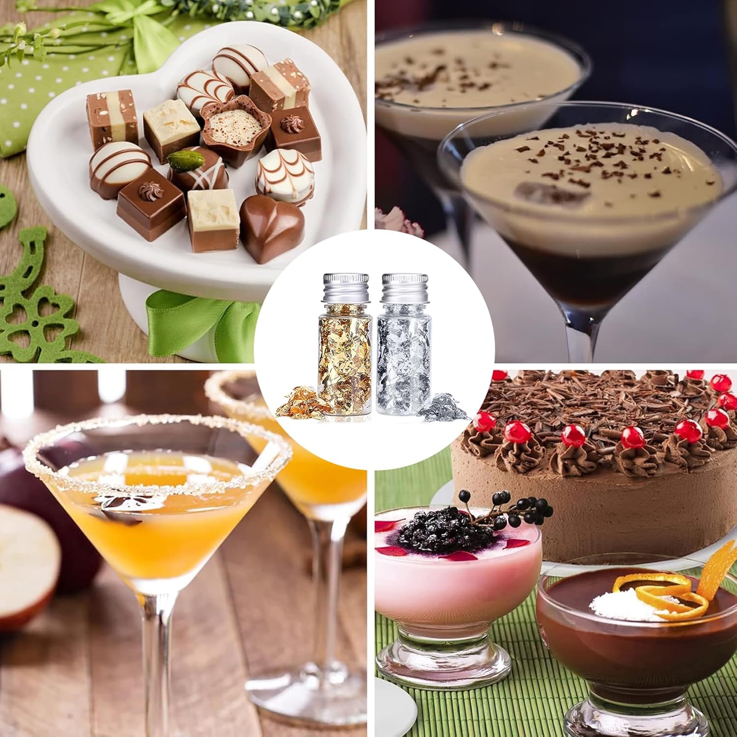 - 【Food & Drinking Decoration Gold Foil Sheets】Edible gold foil flakes can make your cake, candy, desserts, cocktails, etc. become more refined and increase appetite. And edible gold leaf will add a touch of luxury to your dining table. When you having a birthday, wedding, encouragement anniversary party, such special occasions require special food and decorations, can chose this gold edible leaf decorations food.