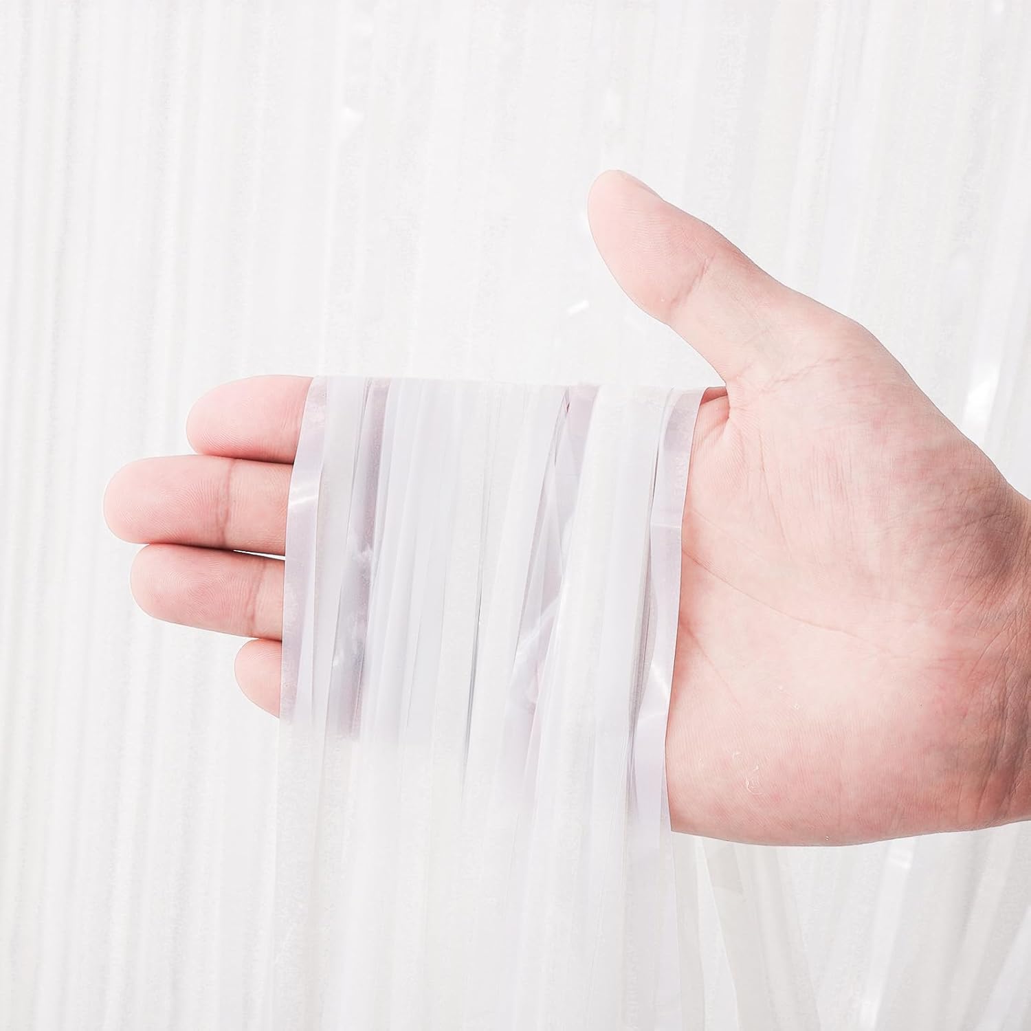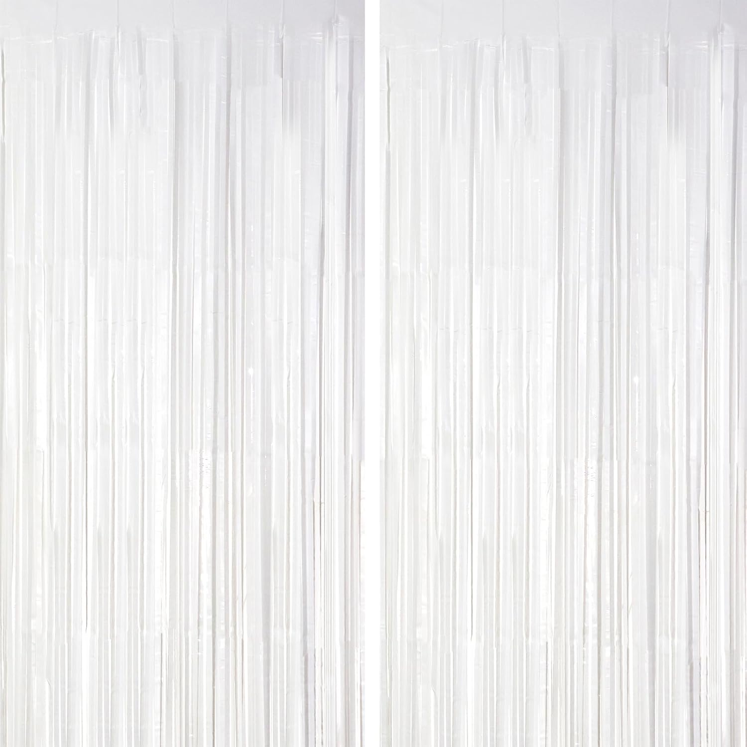 - Premium Quality: Crafted from shiny PET tinsel, these white fringe curtains are designed to be light weight, easy to hang, and resistant to wear and tear. The metallic party streamers reflect light beautifully, creating a mesmerizing visual effect
