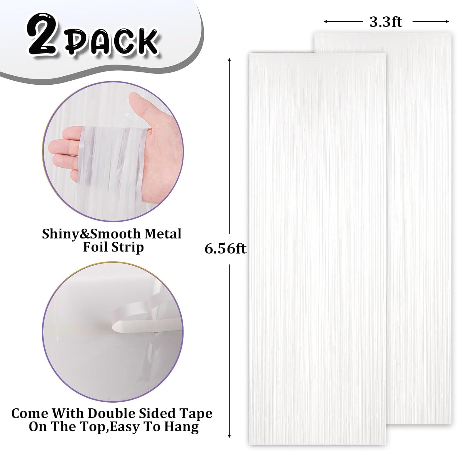 - Stunning Decorative Set: You'll receive 2 pcs white foil fringe backdrop curtains, each measuring 3.28 ft (wide)Γ6.56 ft (drop). Enough length foil fringe curtains backdrops are perfect for the door or wall to create an impressive decoration