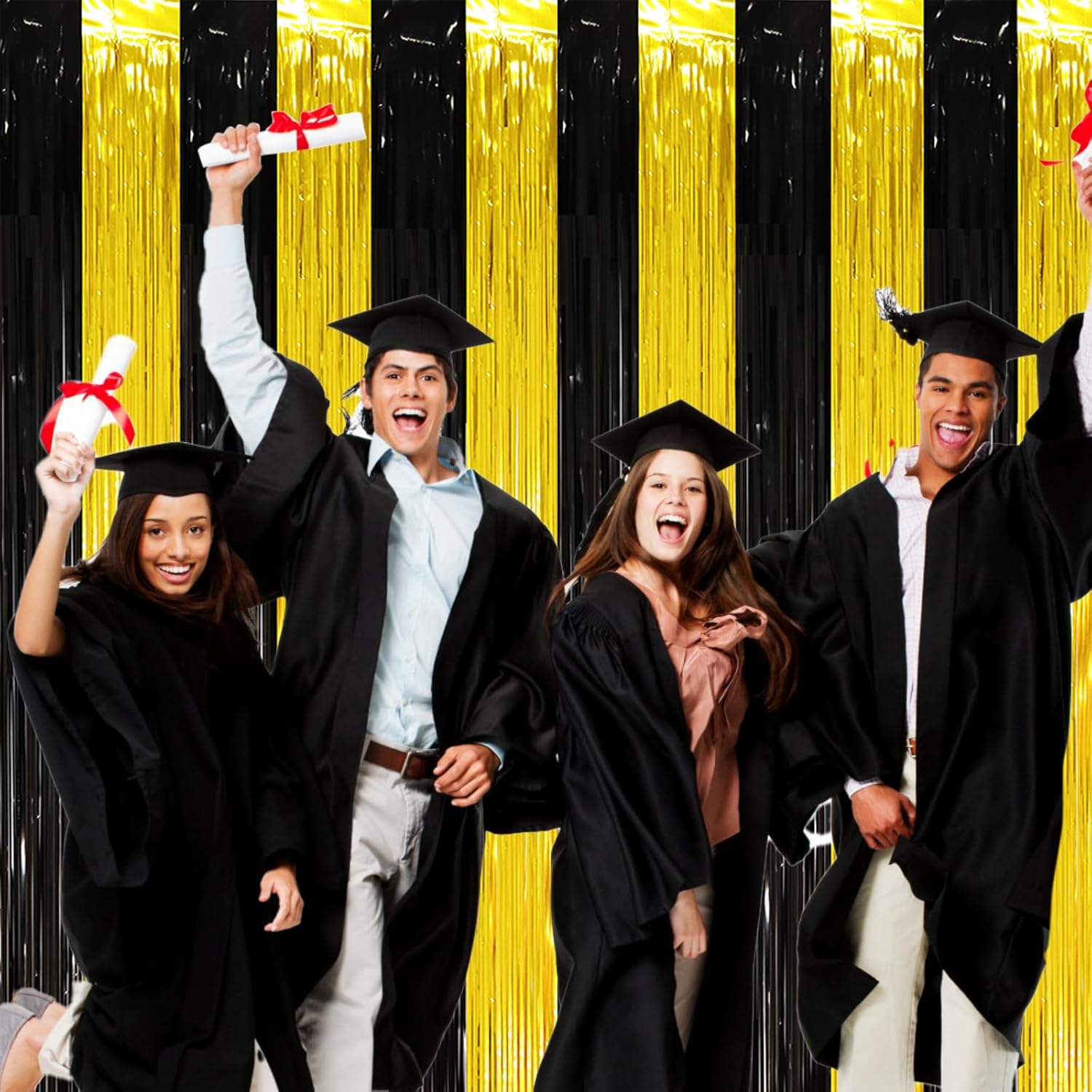 2 Pack Black and Gold Tinsel Foil Fringe Curtains, Black and Gold Party Decorations, Metallic Tinsel Party Streamers Backdrop for 2025 New Years Graduation Prom Party Decorations