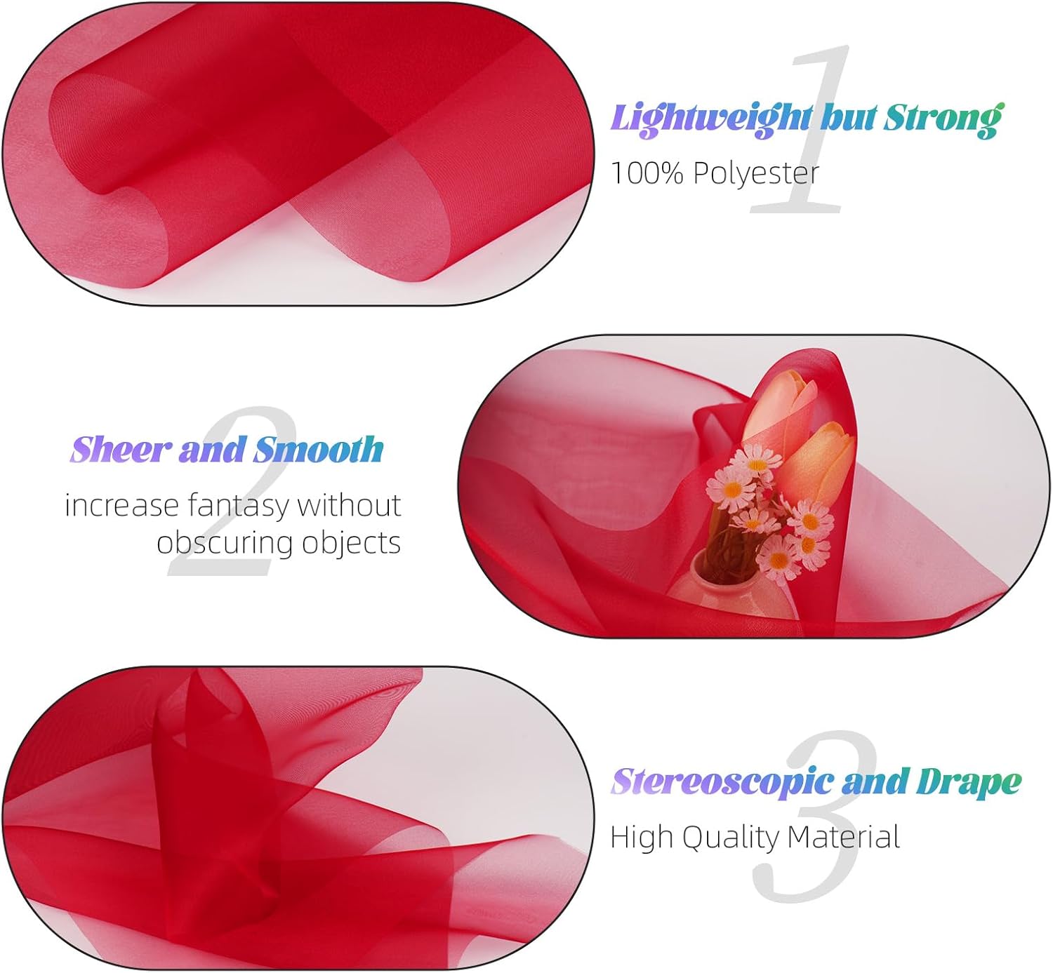- 【Widely Used Scenarios】Organza tulle is suitable for making party backdrops, chair sashes, gift wrapping, bouquet packaging, christmas tree decor, dresses, sheer curtains, capes, sashes and more. Great for birthday party, bridal shower, baby shower, prom, and other occasions.