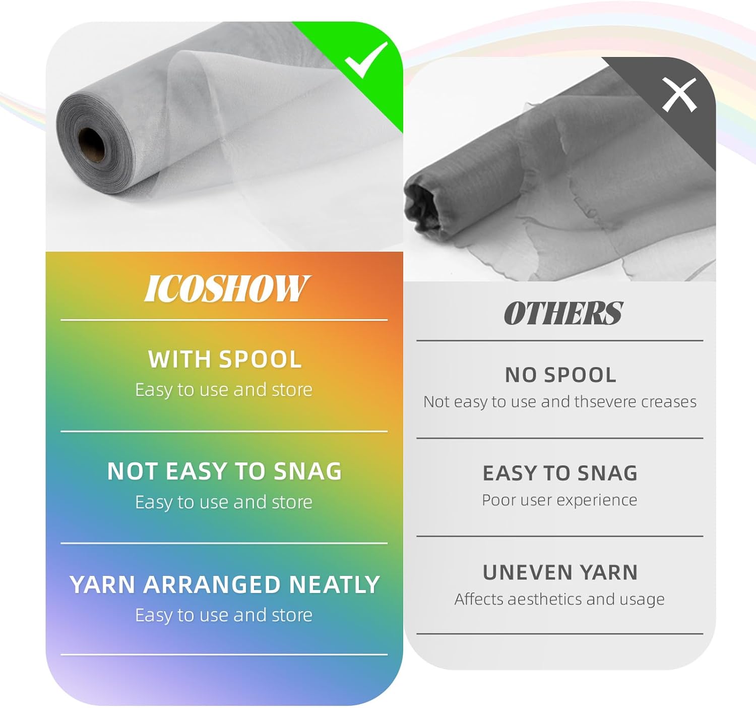 - 【Convenient to Store & Use】Cut it freely according to the length you want, and the edges will not unravel. The organza fabric wraps neatly around a paper core for easy folding and storage. It can maintain its vivid original color after repeated use, and it is not easy to fade.