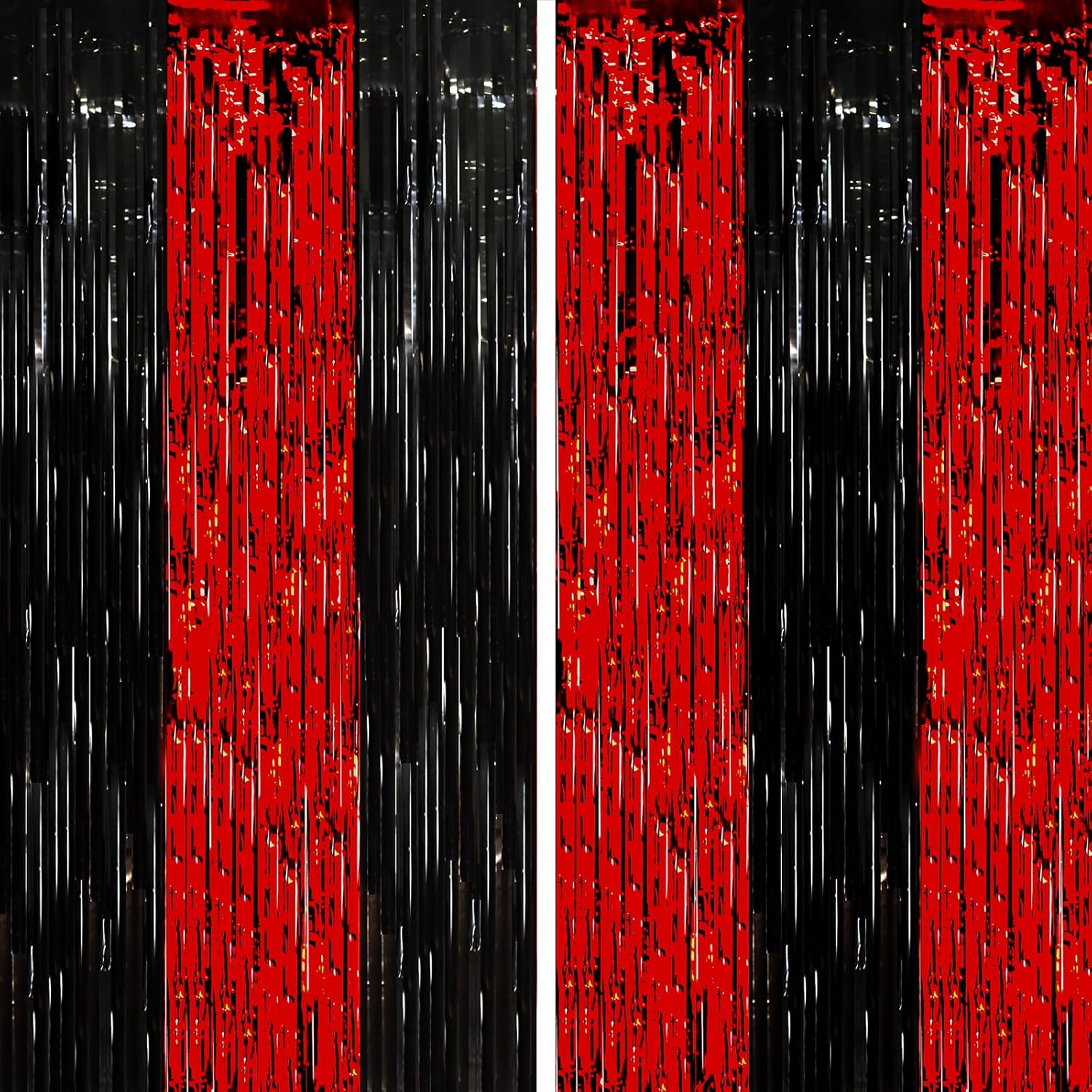 - Stunning Decorative Set: You'll receive 2 pcs black and red foil fringe backdrop curtains, each measuring 3.28 ft (wide)Γ6.56 ft (drop). Enough length foil fringe curtains backdrops are perfect for the door or wall to create an impressive decoration