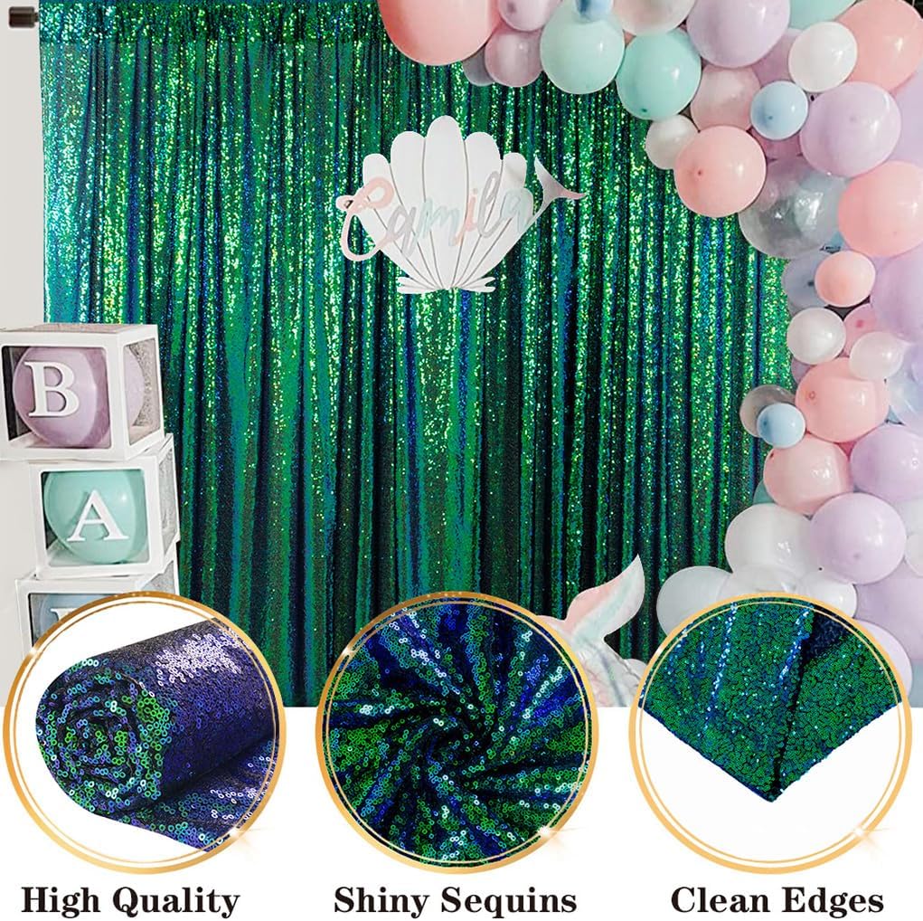 - ★ BACKDROP CURTAIN: 1 Pc 10FTx10FT height sequin backdrop curtain Colorful Green wedding party decor.