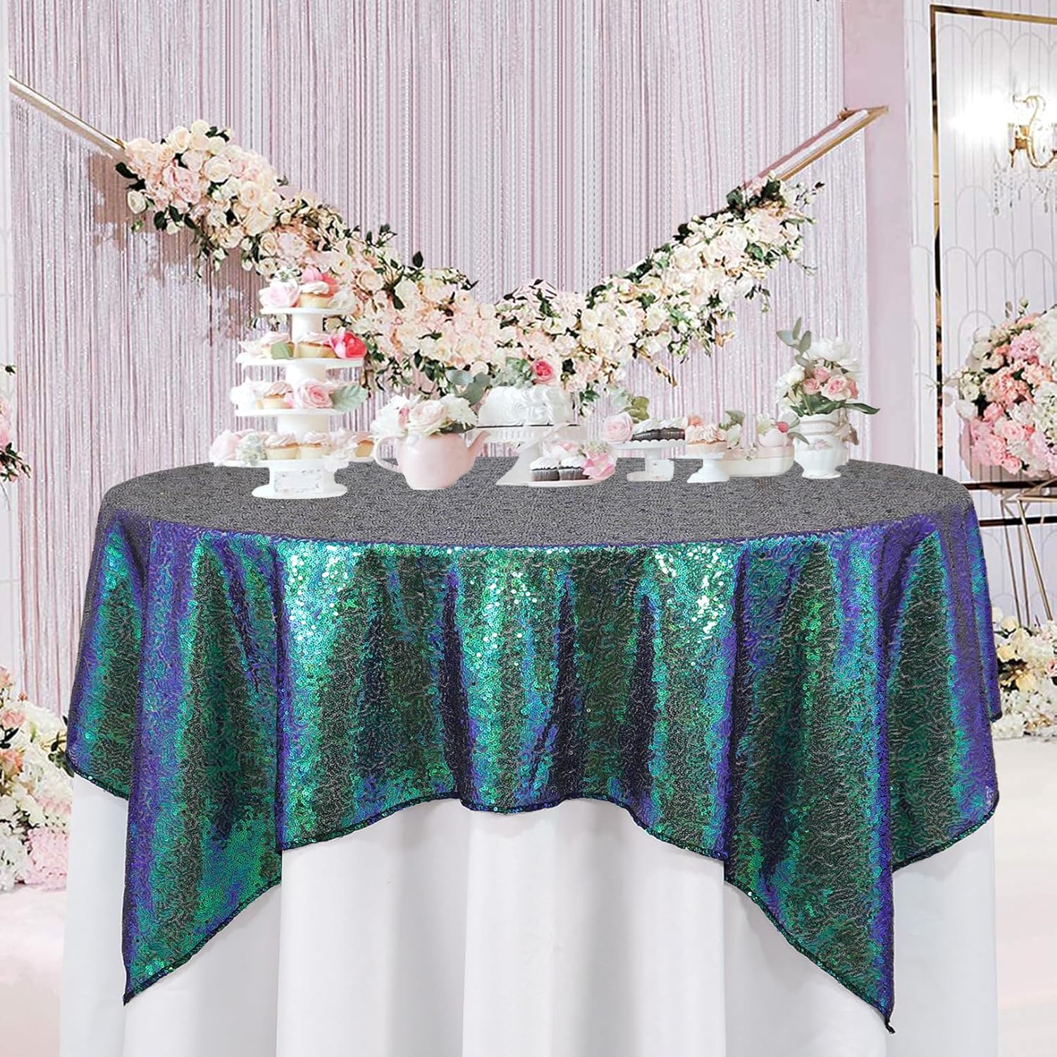- ❤ NO DROPPING SEQUINS : This glitter table cover overlay with serged edges avoid falling sequins, beautiful colors of sequin tablecloth ensure your wedding party birthday christmas prom decoration dessert cake tables more elegant and sparkly