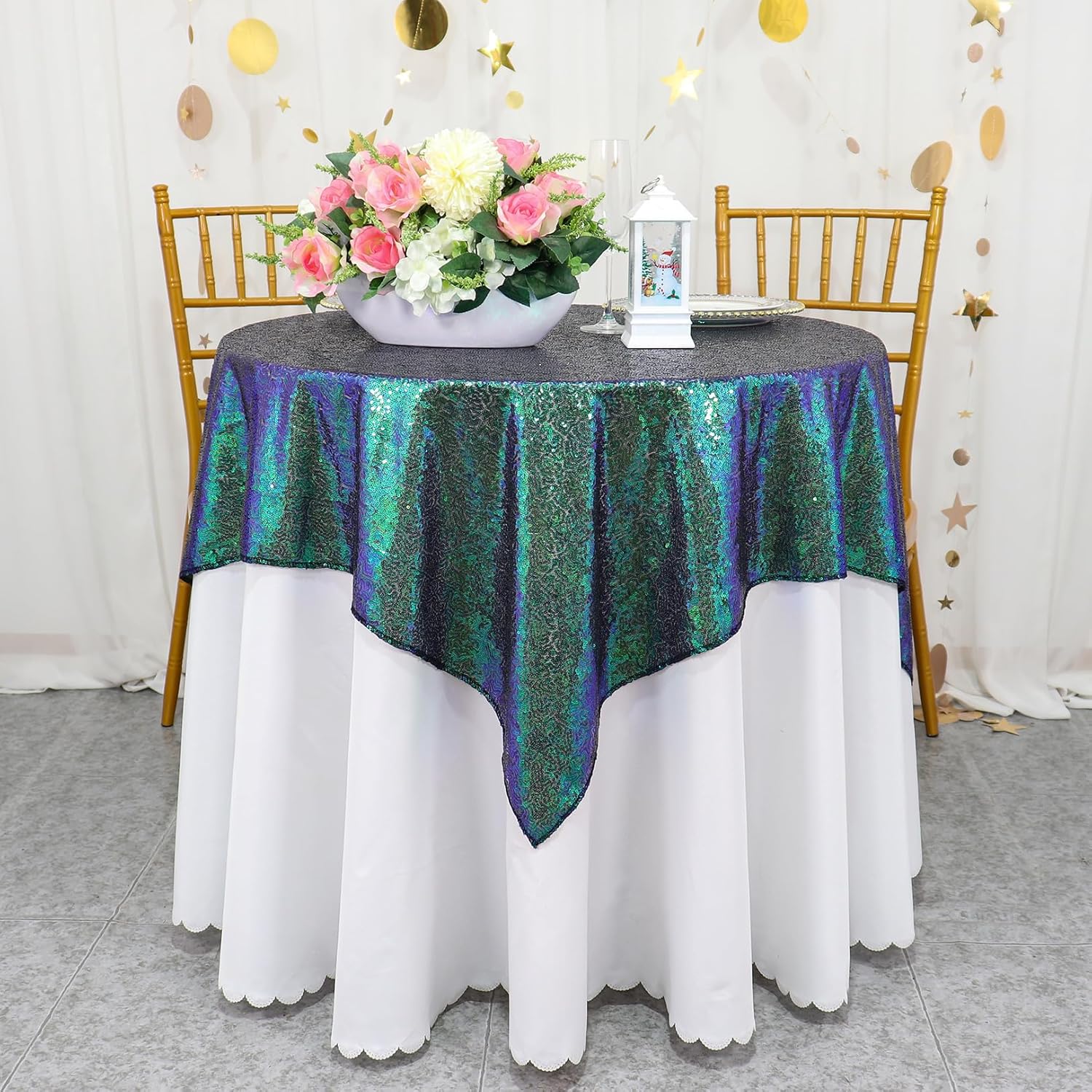 - ❤ SIZE OF SEQUIN TABLECLOTH : 1pc 36x36 Inch Iridescent Green Sequin Tablecloth Table Linen, this small square tablecloth is fit for small round tables under 36''