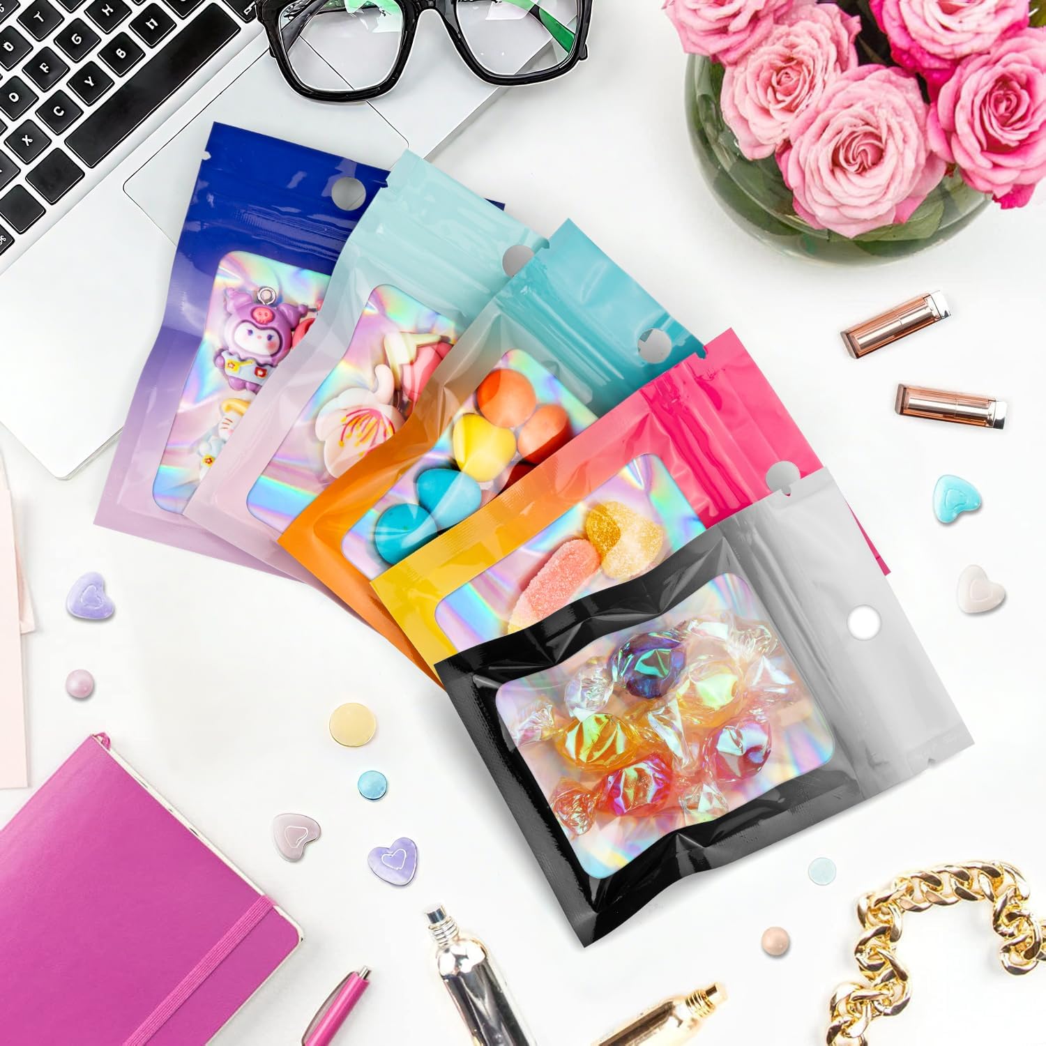 - Easy Storage Mylar Bag Wide Use-You can packed whatever you what in this little bags, food, jewelry, car freshies, wax melts, etc. Perfect baggies for small business and supplies to pack your goods. Good to share your homemade gifts to your friends. Perfect packaging foil pouch for snacks on the go, small bags packing small items for easy grab.