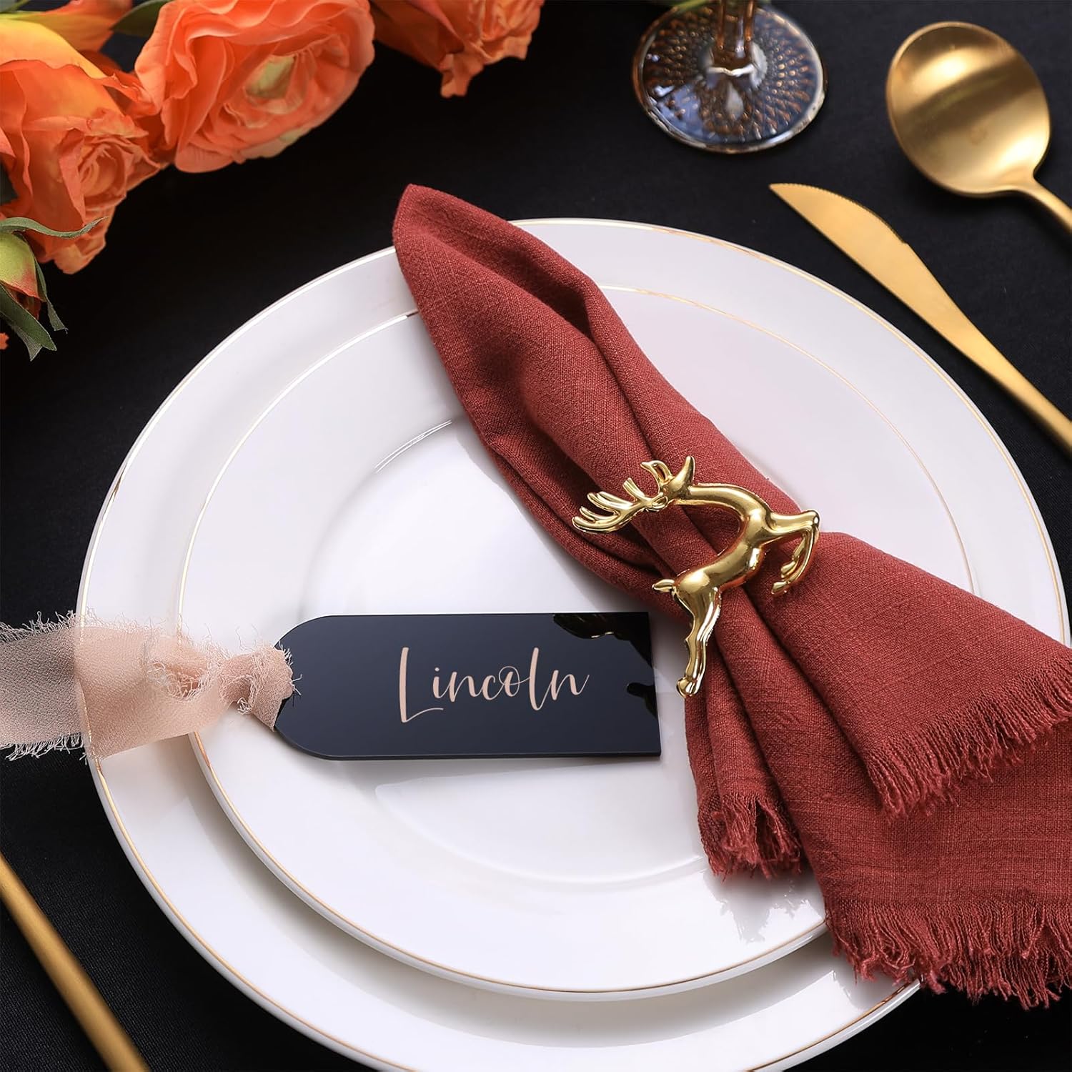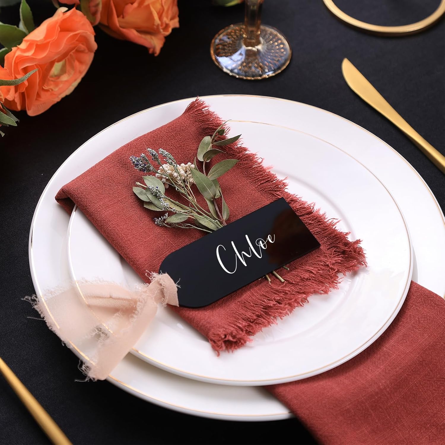 - Functional & Versatile: Measuring 3.9x1.6 inches, these acrylic place cards offer ample space for customization. Their blank surfaces invite you to write or engrave guest names, table numbers, or personal messages, adding a personal touch to your event. The hanging hole design allows for easy attachment to napkin rings, centerpieces, or other decorative elements, enhancing the overall presentation of your tables.