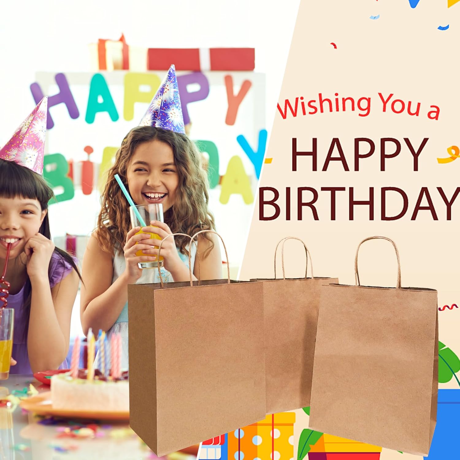 BAG BOX 100 Pcs Medium 8.25x4.3x10.6 Inch Brown Kraft Paper Gift Bags with Handles for Bulk Wedding, Party Favors, Grocery, Shopping, Retail Merchandise, Gift Sacks