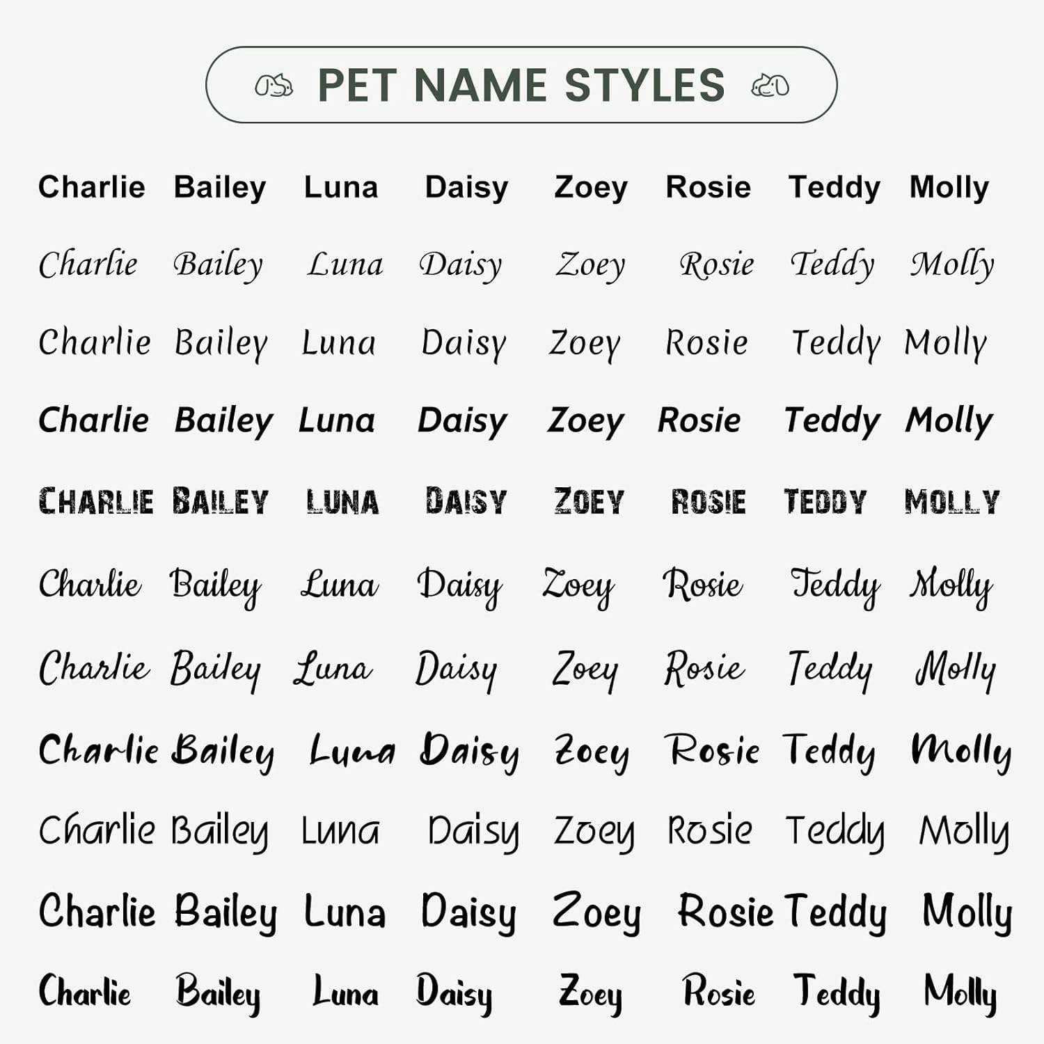 - Custom Dog Tags: We offer a wide variety of fonts for you to freely choose and design the dog tag style you want, creating a fashionable, beautiful and practical pet id tag for your dog or other pets!