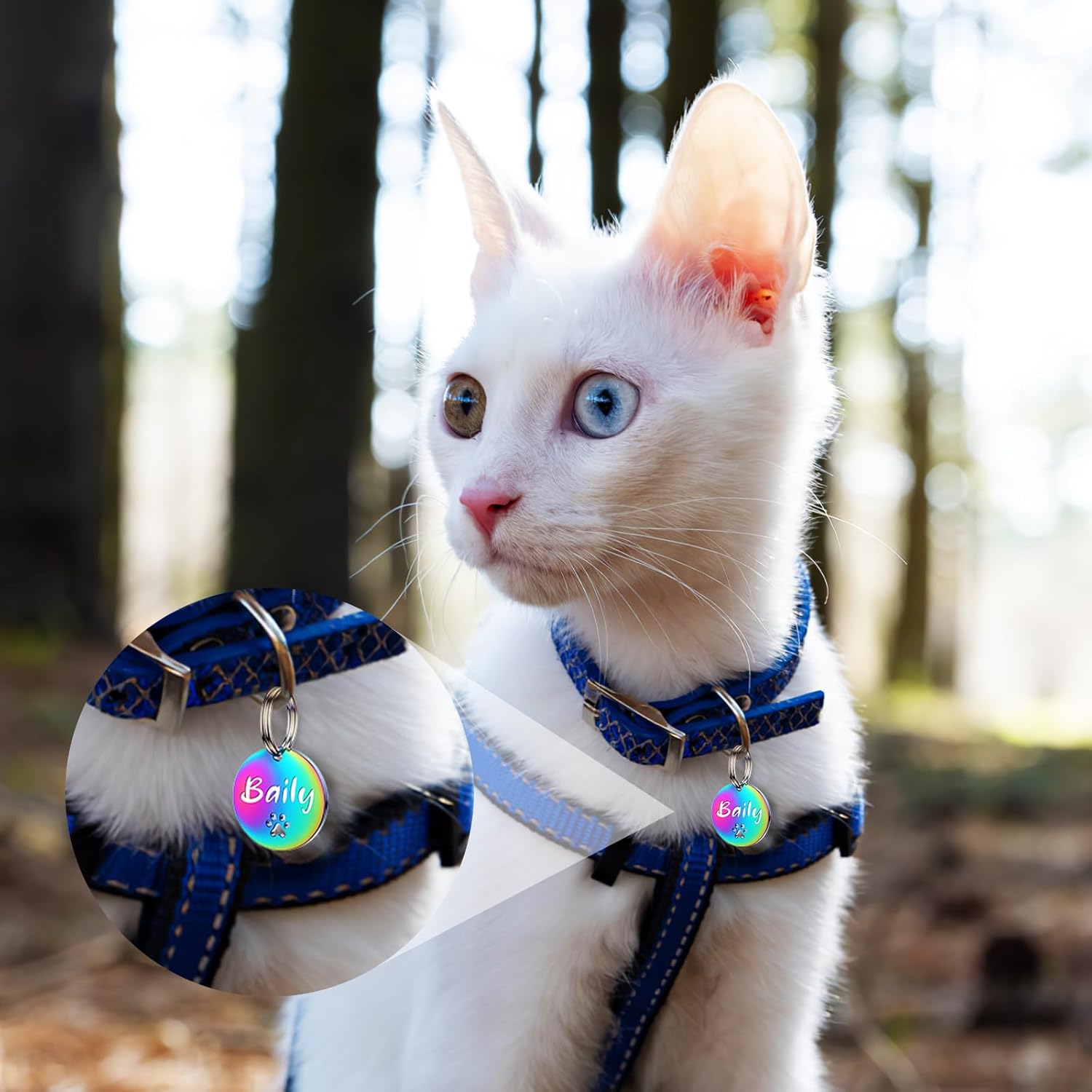 - Excellent Pet Tags Personalized: Our customized dog tags for pets are made of high-strength stainless steel, which is durable and resistant to rust with a polished surface. The laser engraving ensures clear and legible text that is long-lasting and scratch-resistant. The weight and thickness are perfectly balanced, providing comfort for your furry friend without weighing them down.