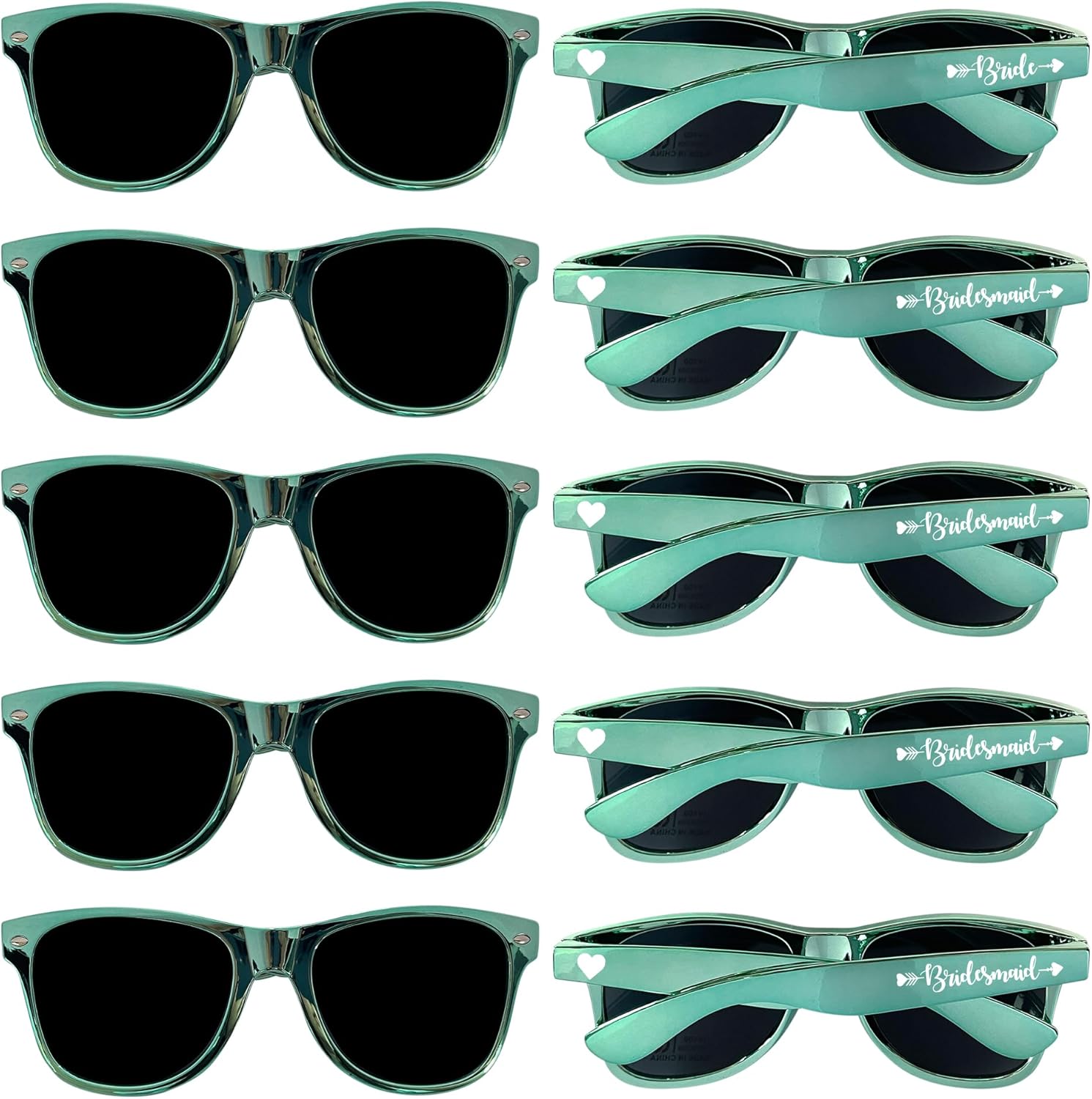 - Bachelorette Sunglasses: The set includes 1 pair of 'Bride' Sunglasses, 9 pairs of 'Bridesmaid' Sunglasses. It is ideal bachelorette party accessories that one is for yourself and nine are for your bridesmaids. Share bachelorette sunglasses with your squad!