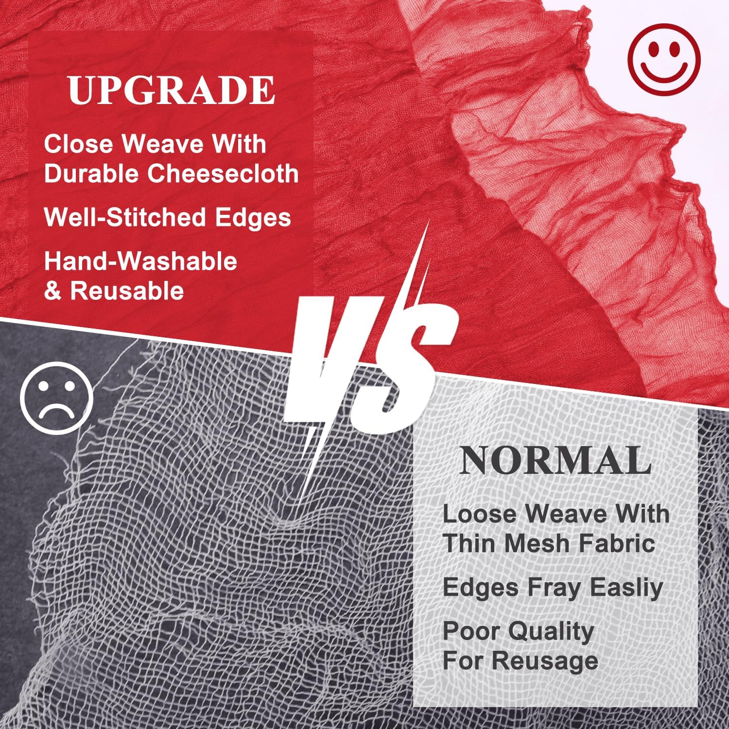 - 【Cheesecloth Table Runner】 Size: 35" W x 120" L. You will get 2 pieces 10FT length cheesecloth table runner. The sheer rustic table runner is long enough to span a large table and drape gracefully across the table. It will gently sway in the wind, adding a romantic atmosphere to your occasion. These eye-catching gauze table runners are ideal for arranging an elegant, stylish tablescape.