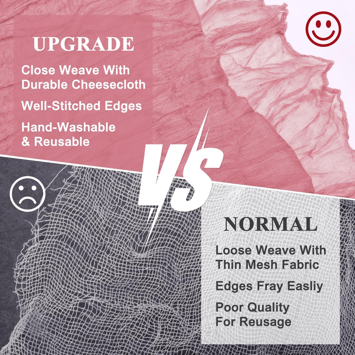 Asee'm 12pcs Cheesecloth Table Runner 120 Inches Dusty Rose Boho Gauze Cheese Cloth Runner 10FT Rustic Sheer Table Runners for Summer Wedding Baby Shower Holiday Party Decoration