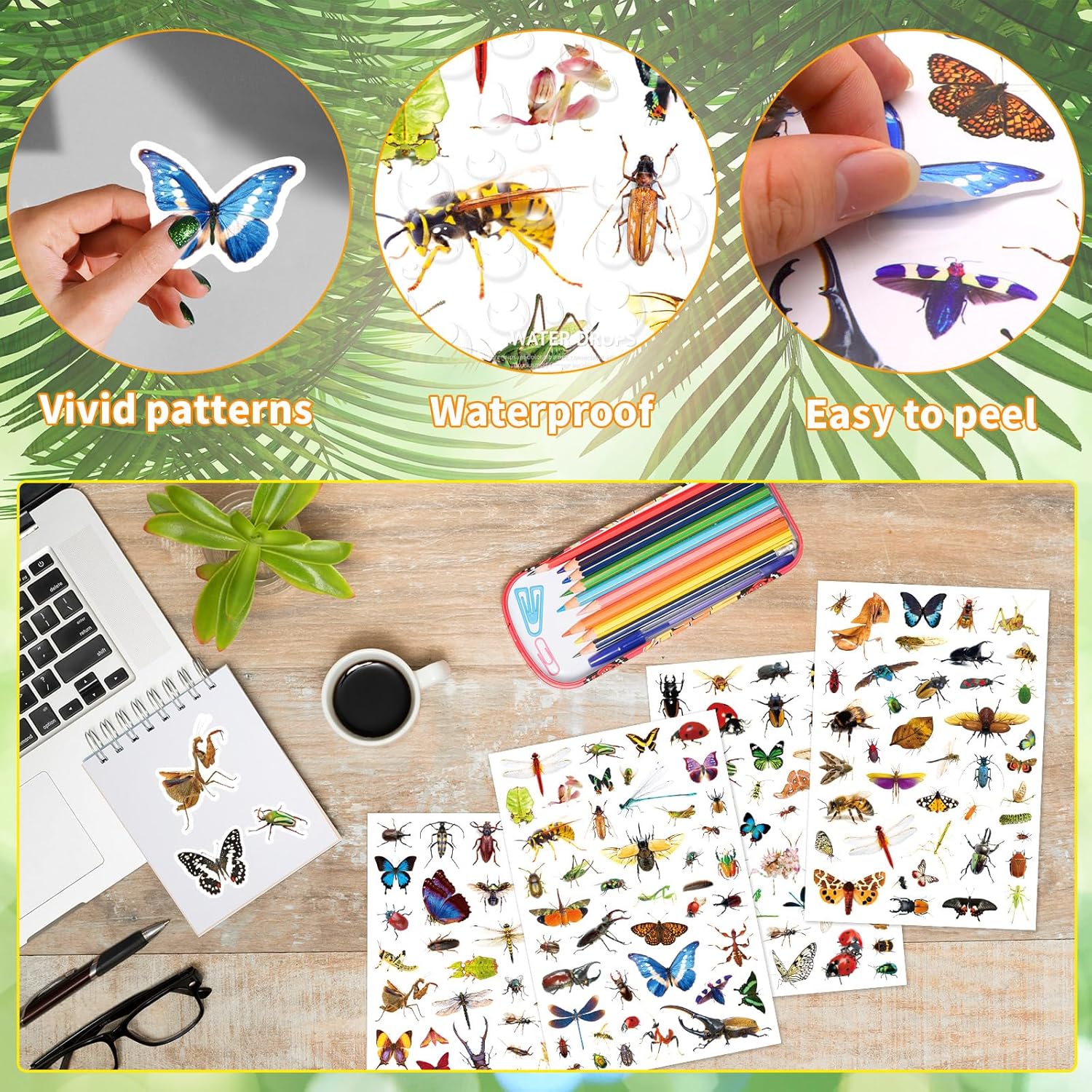 - Classic animal pattern -- Our stickers contain several kinds of classic insects like beetles, butterflies, bees, ants, ladybugs, dragonflies and more.